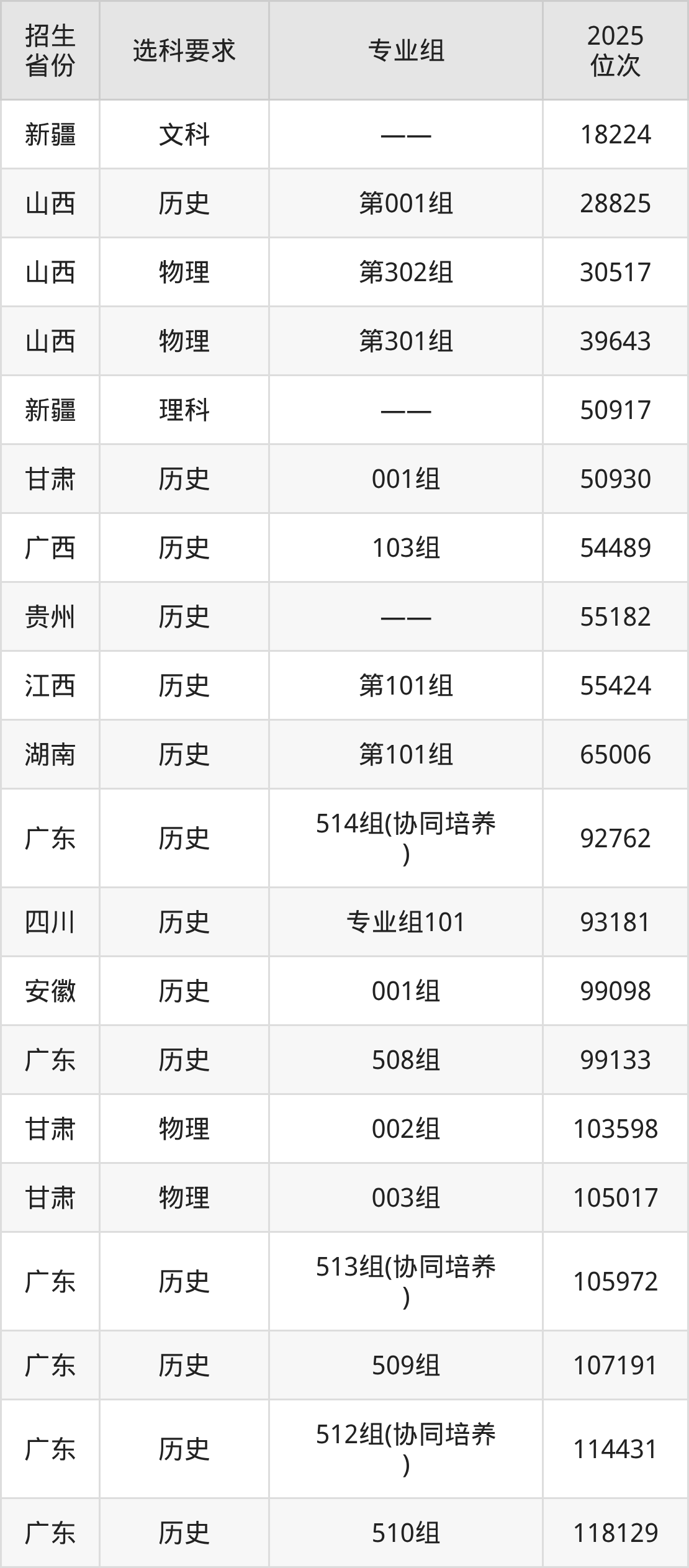 廣東建設(shè)職業(yè)技術(shù)學(xué)院2025年在全國各省的位次差異較大,最高位次是18224位(新疆文科)、最低位次是373329位(廣東物理類)。各省具體位次請看下圖: