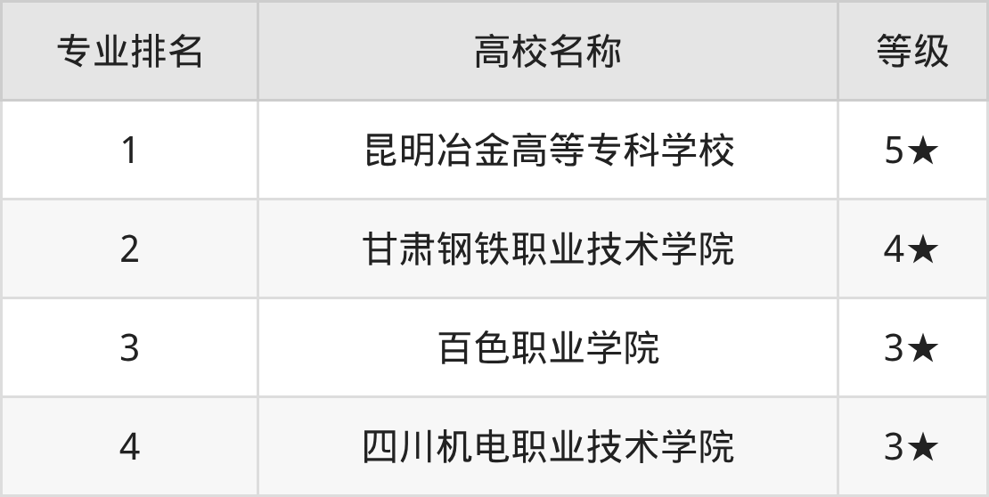 1、昆明冶金高等??茖W(xué)校(5★級(jí))