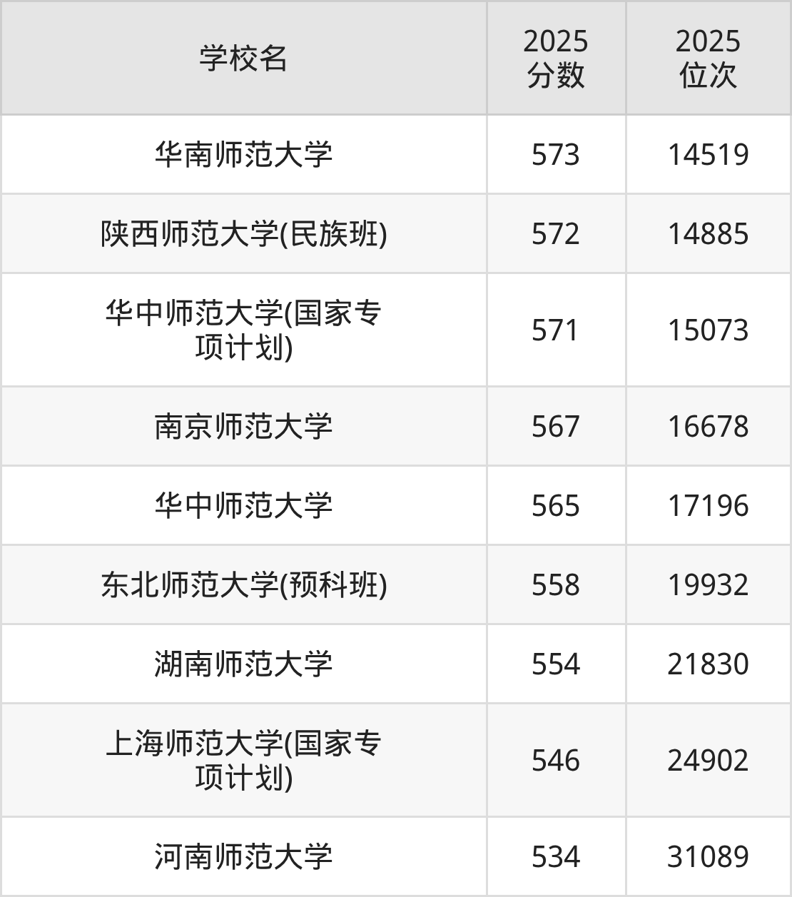 | 學(xué)校名 | 2025 分?jǐn)?shù) | 2025 位次 |