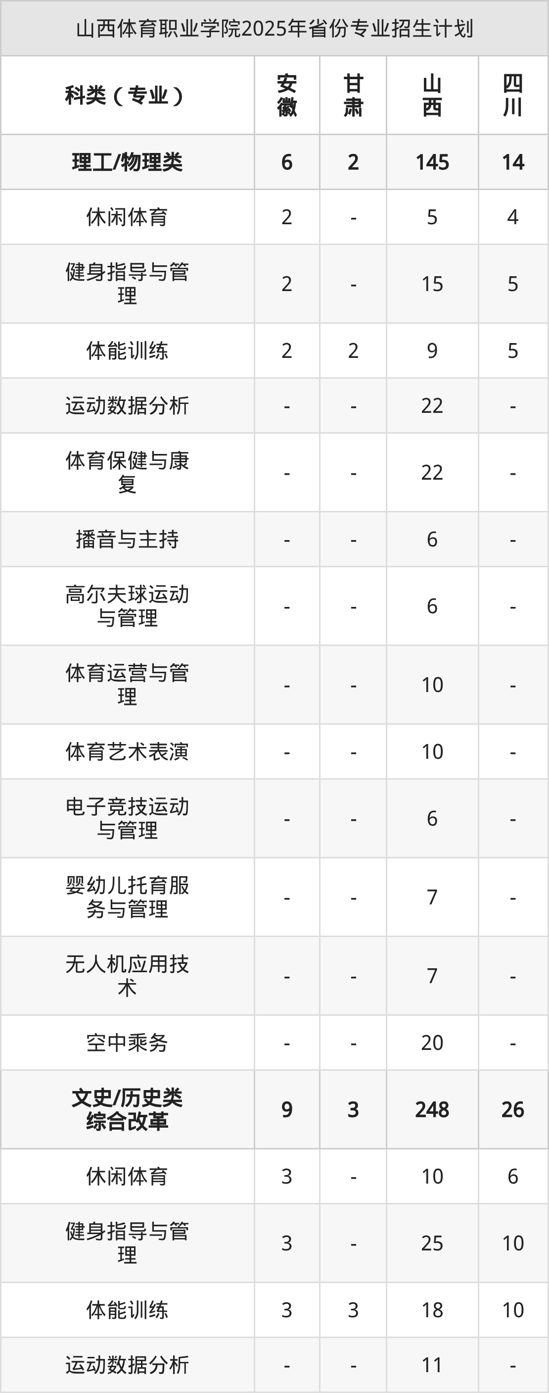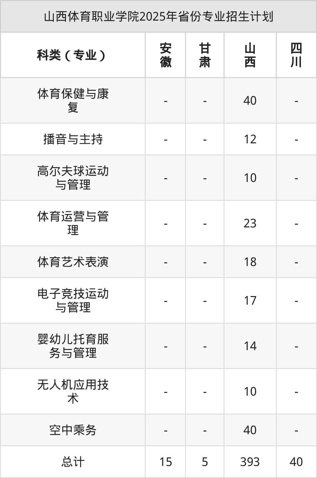2026年山西體育職業(yè)學(xué)院專科招生計(jì)劃待公布,下面附上2025年數(shù)據(jù),暫供參考: