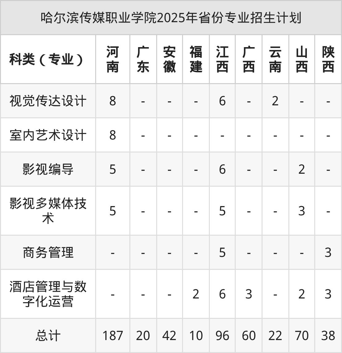 2026年哈爾濱傳媒職業(yè)學(xué)院??普猩媱澊迹旅娓缴?025年數(shù)據(jù),暫供參考: