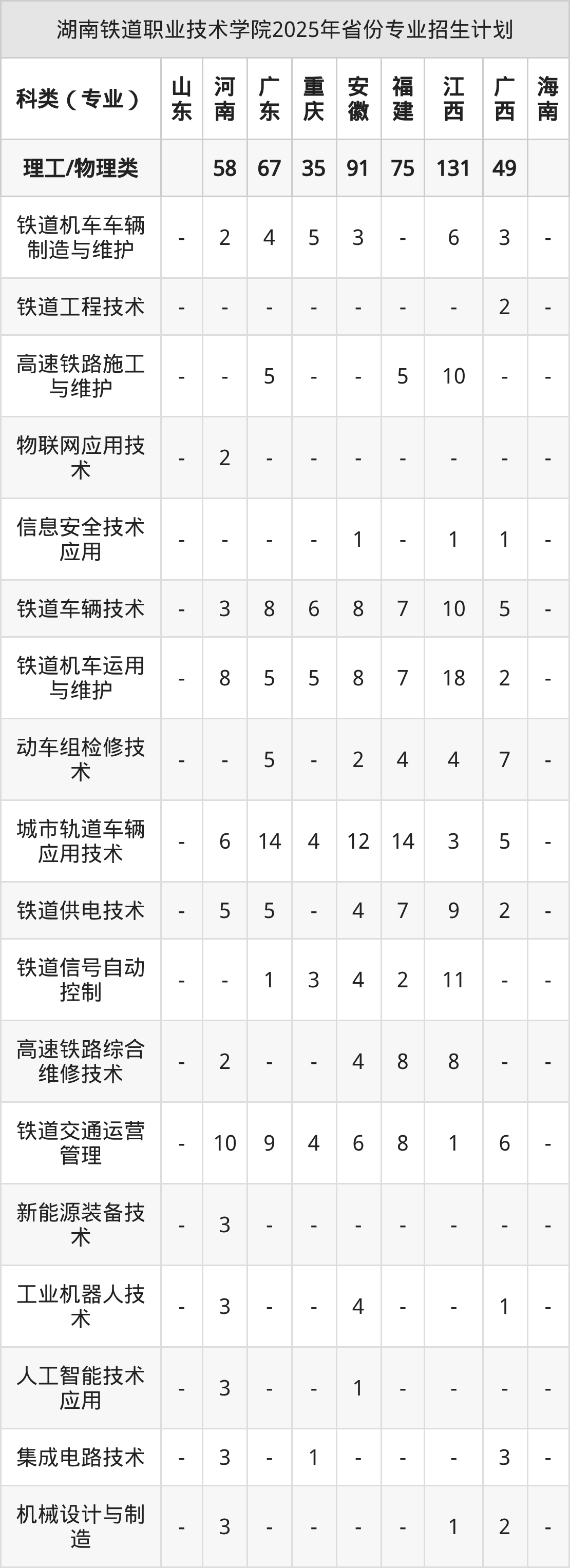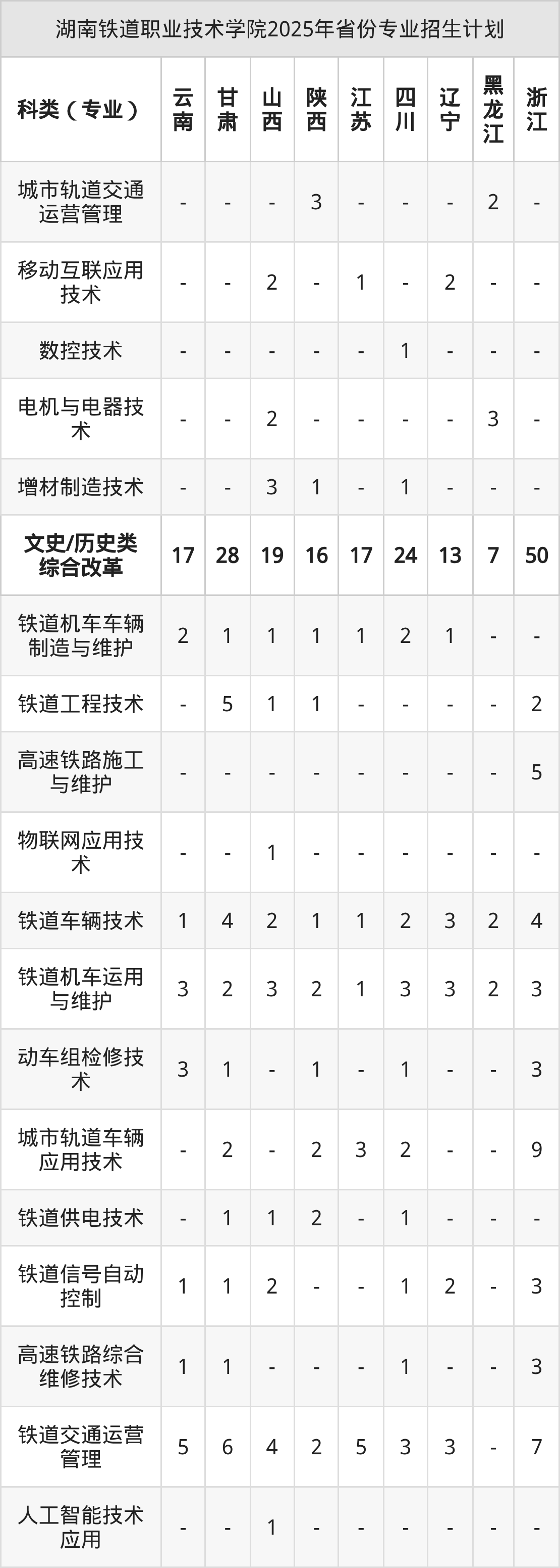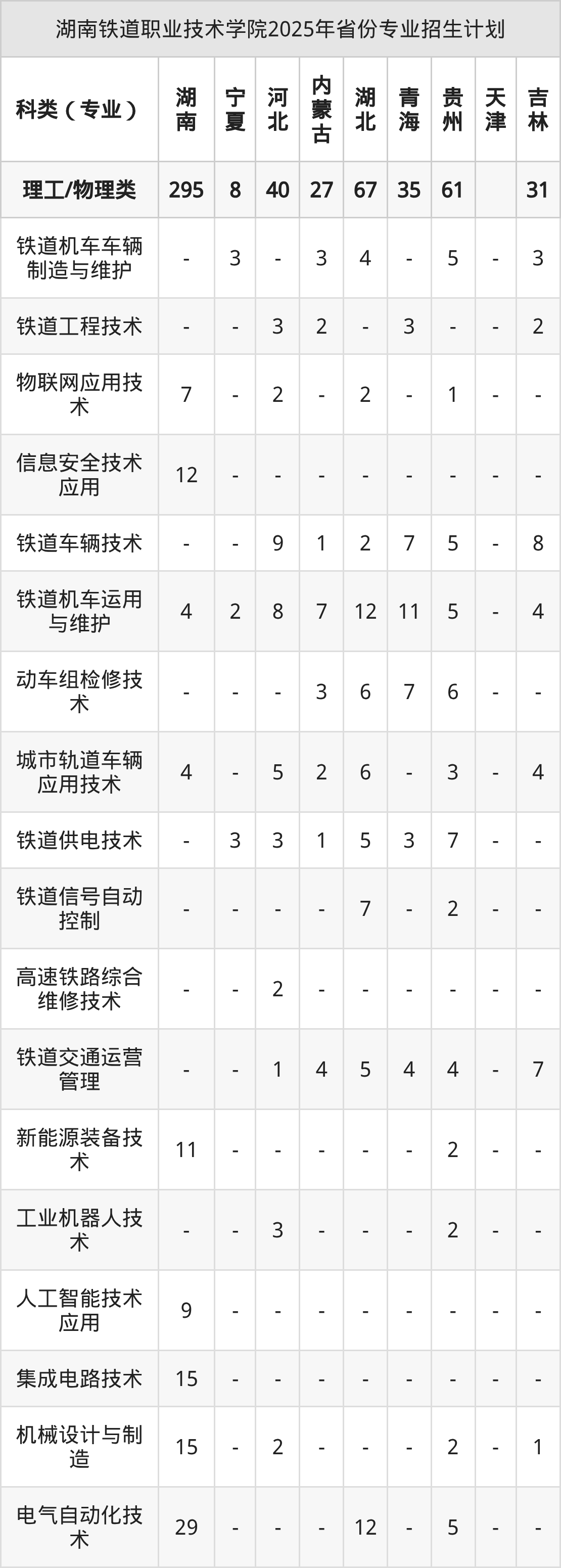 2026年湖南鐵道職業(yè)技術(shù)學(xué)院??普猩?jì)劃待公布,下面附上2025年數(shù)據(jù),暫供參考: