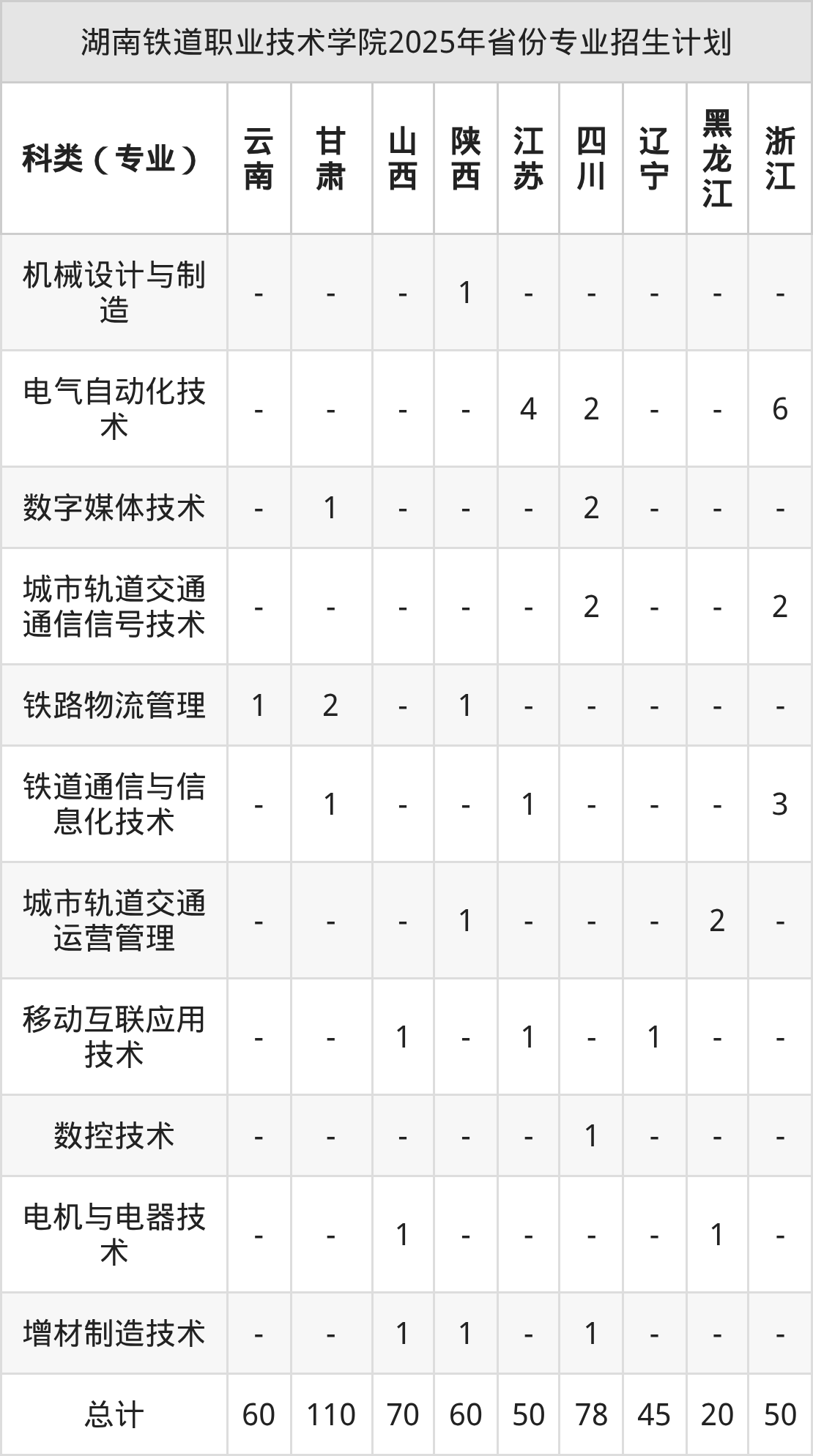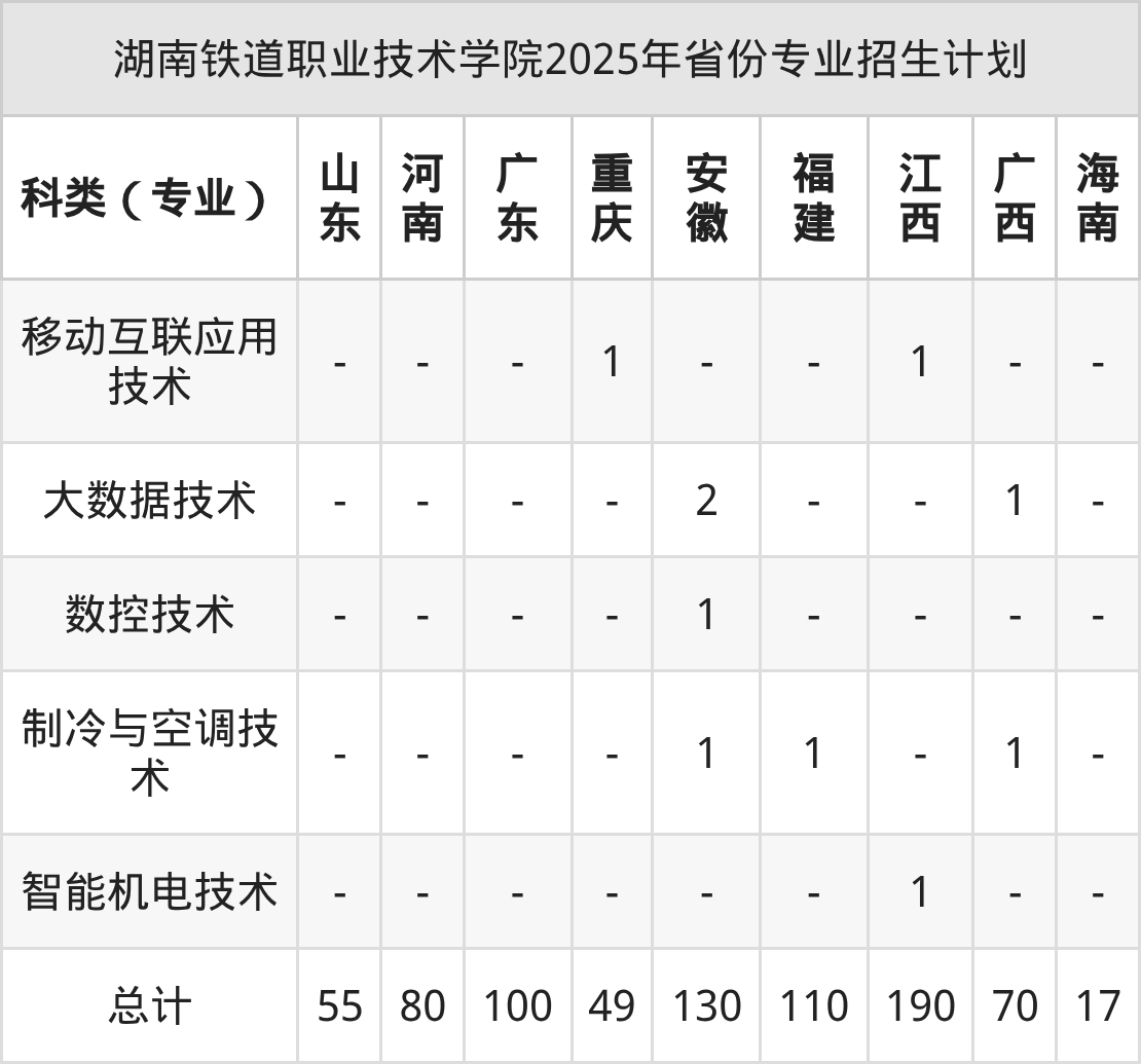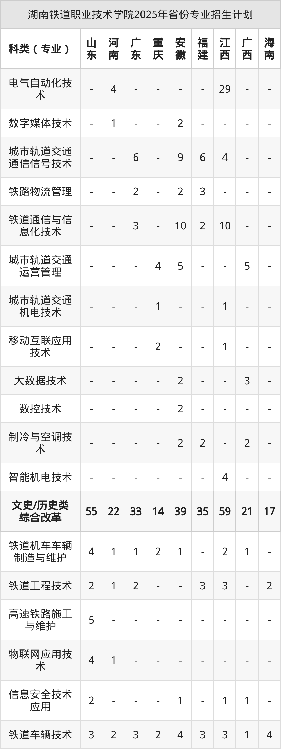 | 湖南鐵道職業(yè)技術(shù)學(xué)院2025年??谱畹头謪R總 | ||||