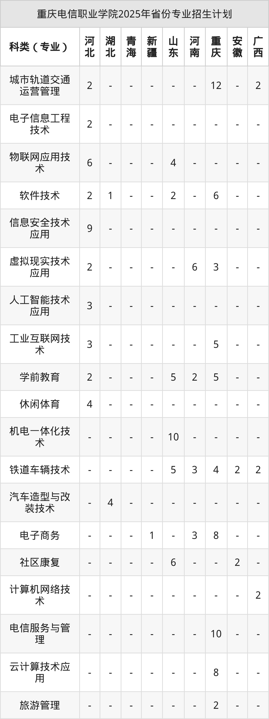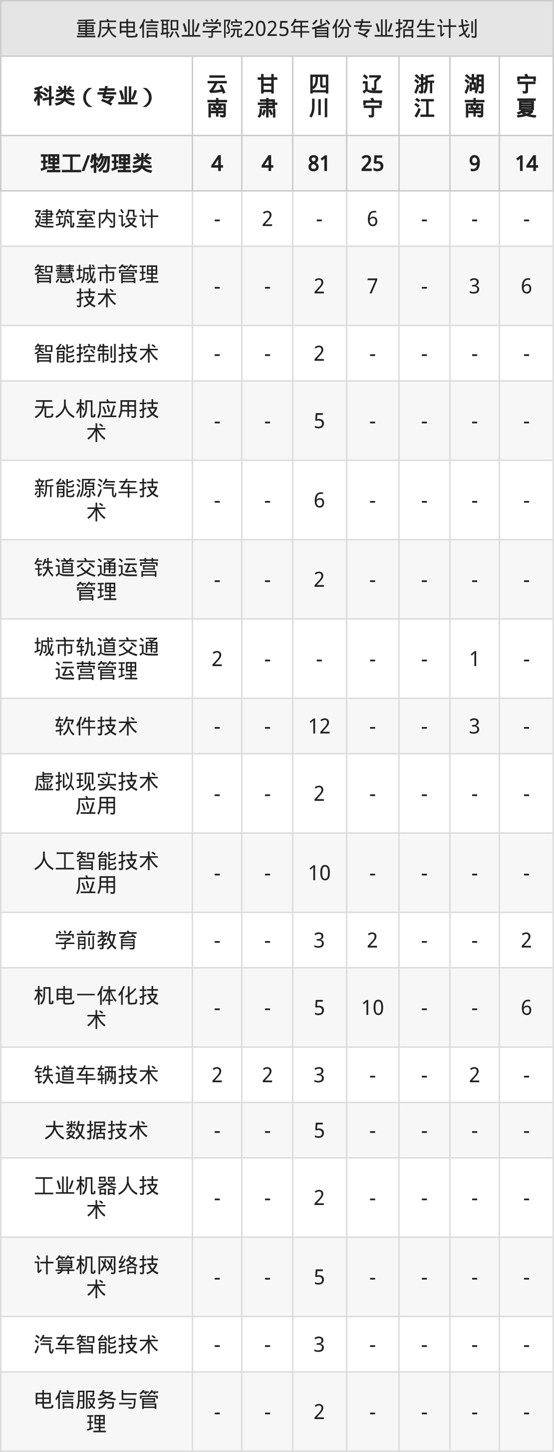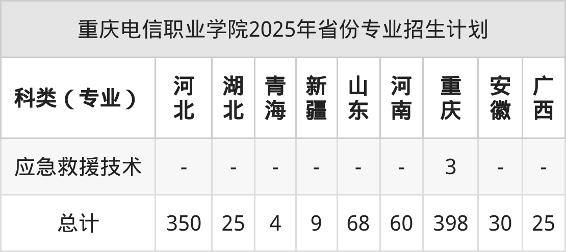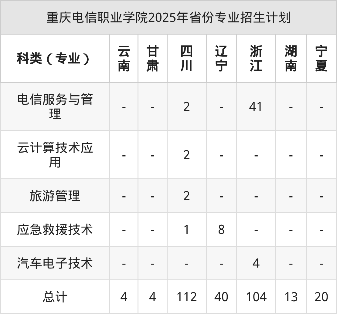 2026年重慶電信職業(yè)學(xué)院??普猩?jì)劃待公布,下面附上2025年數(shù)據(jù),暫供參考: