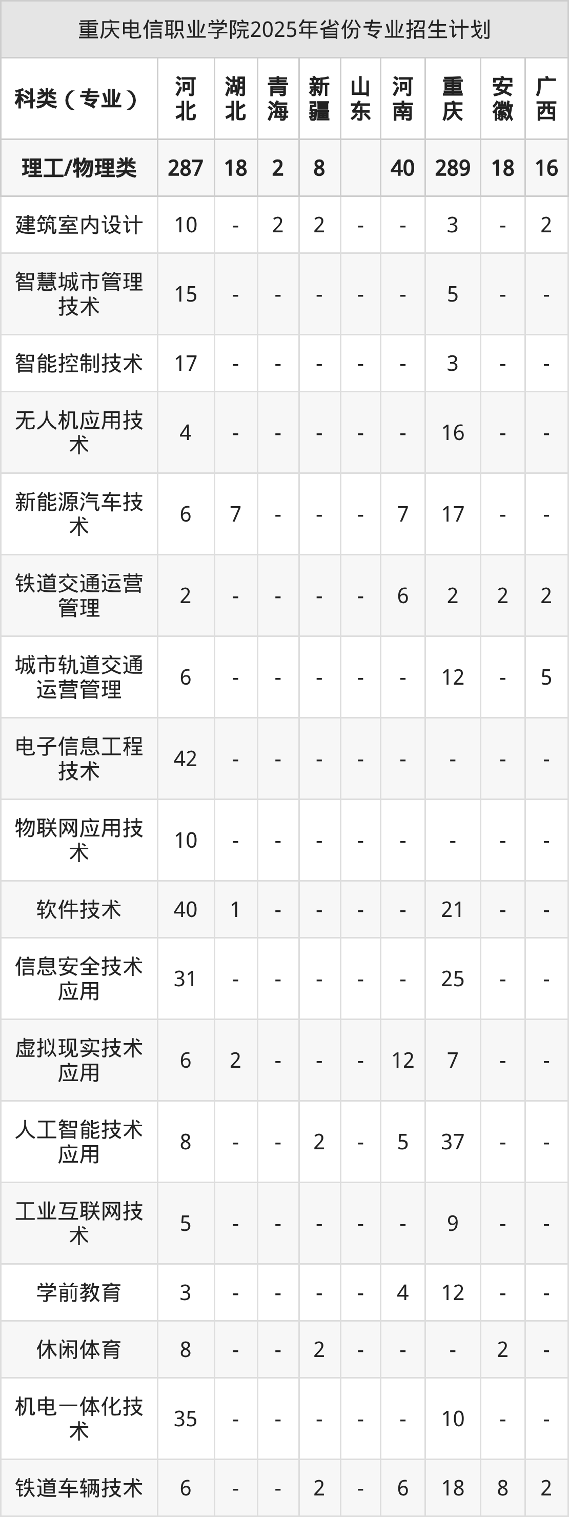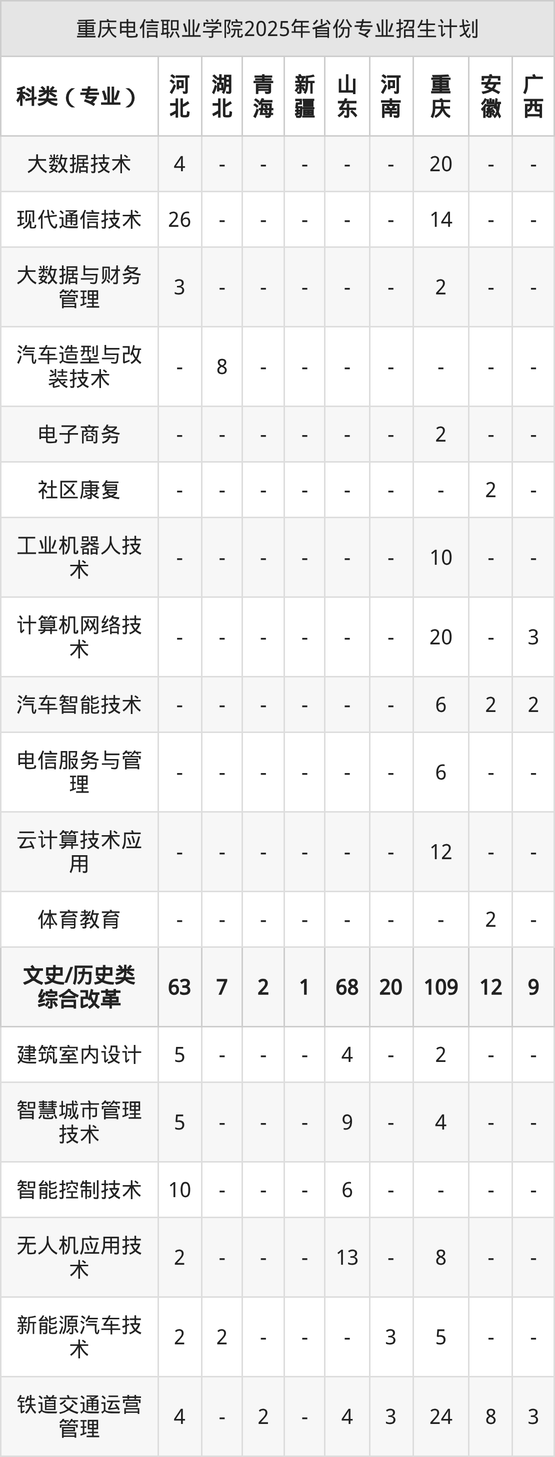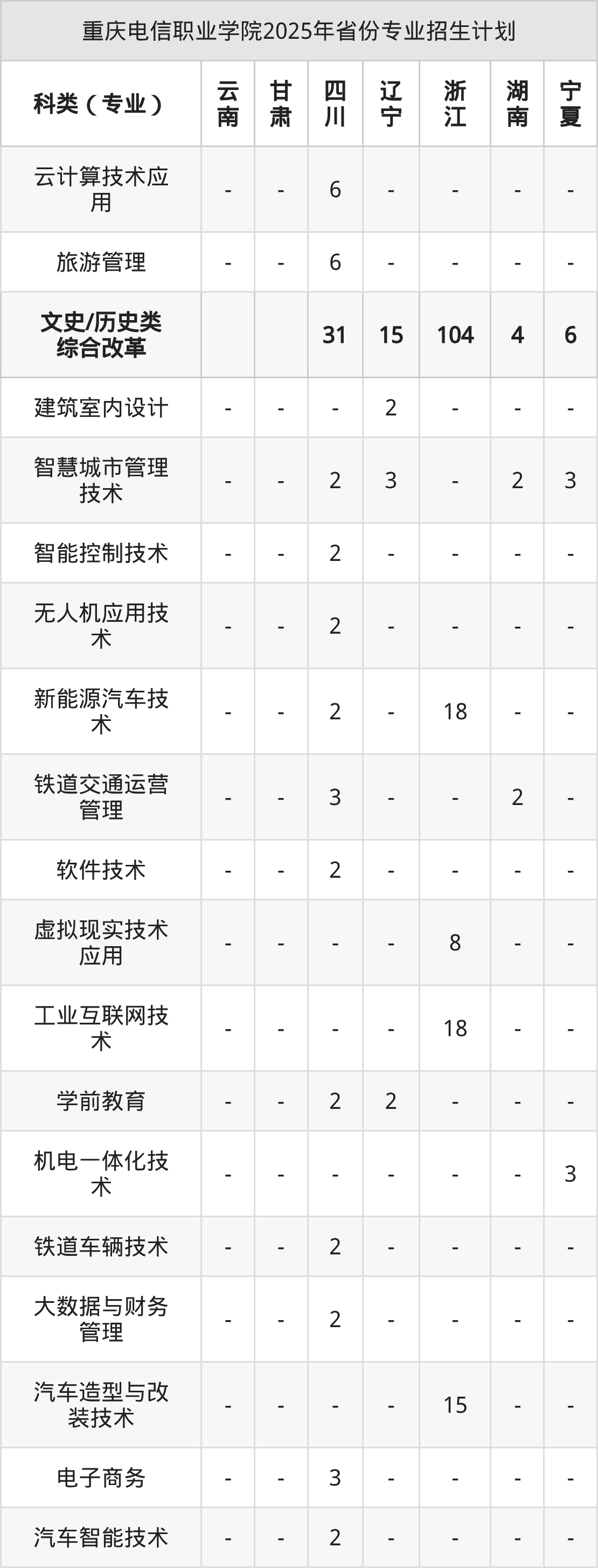 2026年重慶電信職業(yè)學(xué)院??普猩?jì)劃待公布,下面附上2025年數(shù)據(jù),暫供參考: