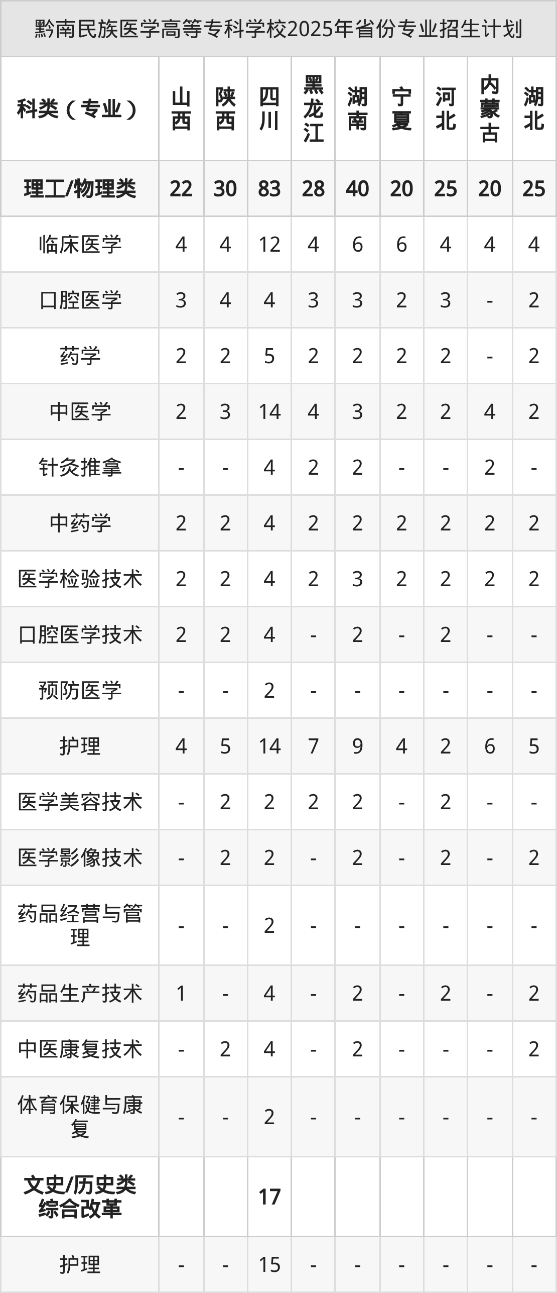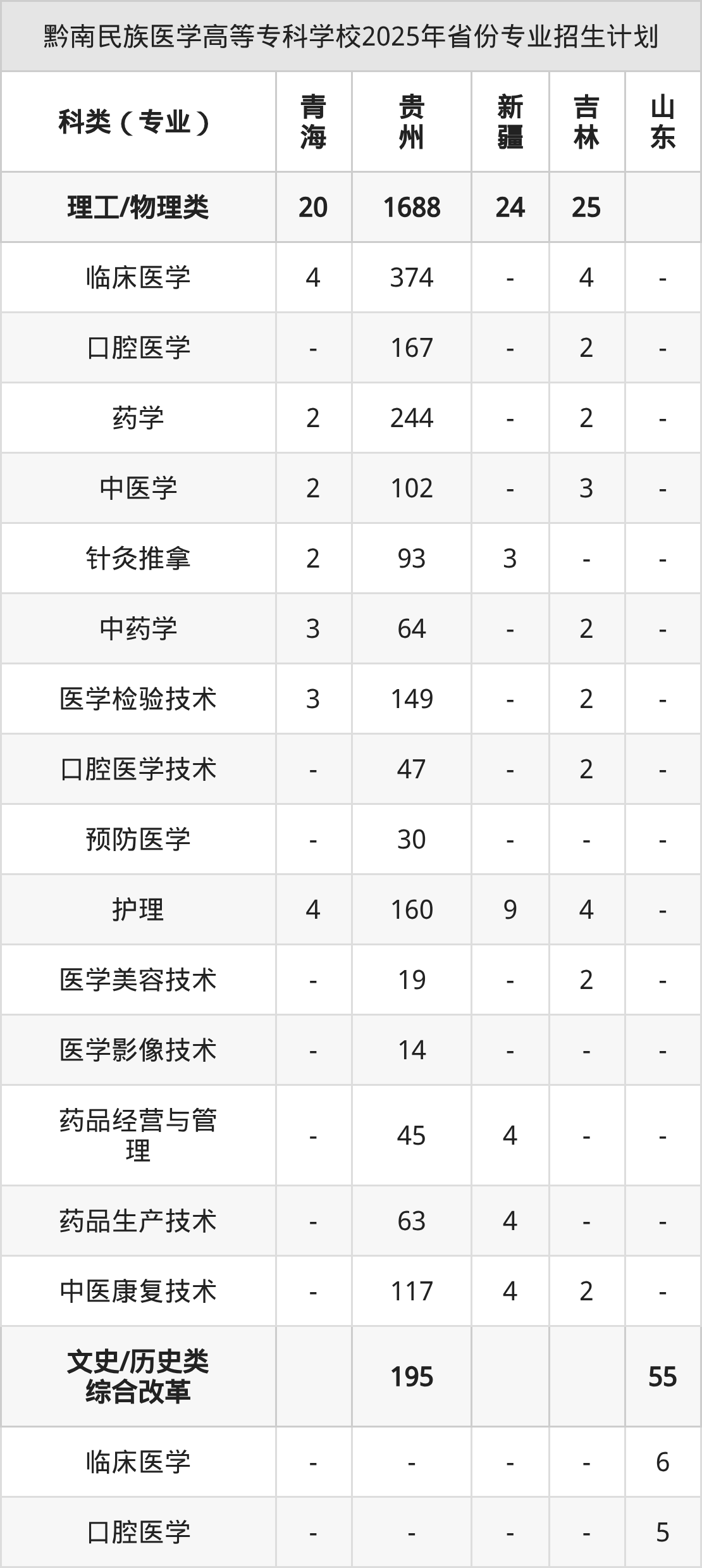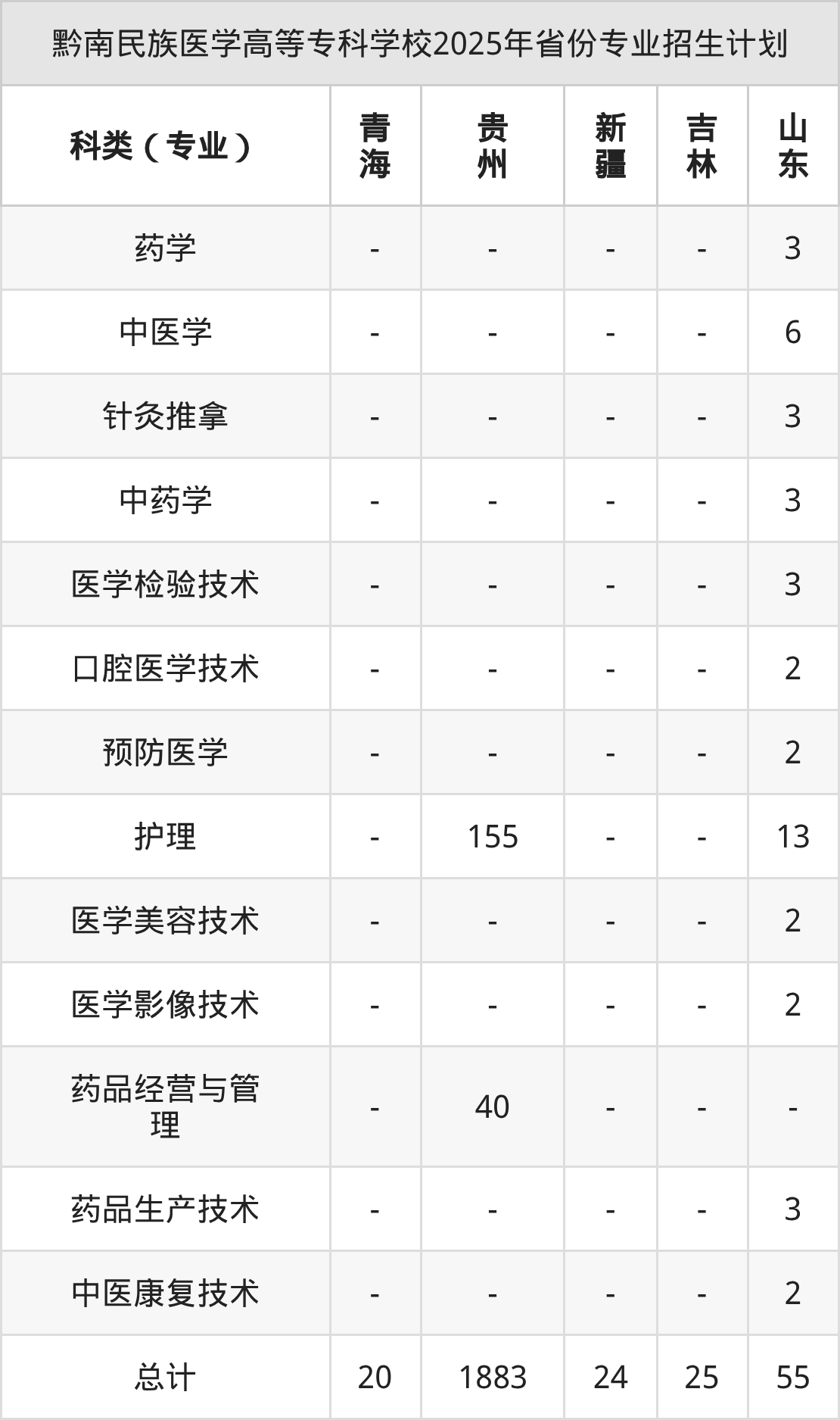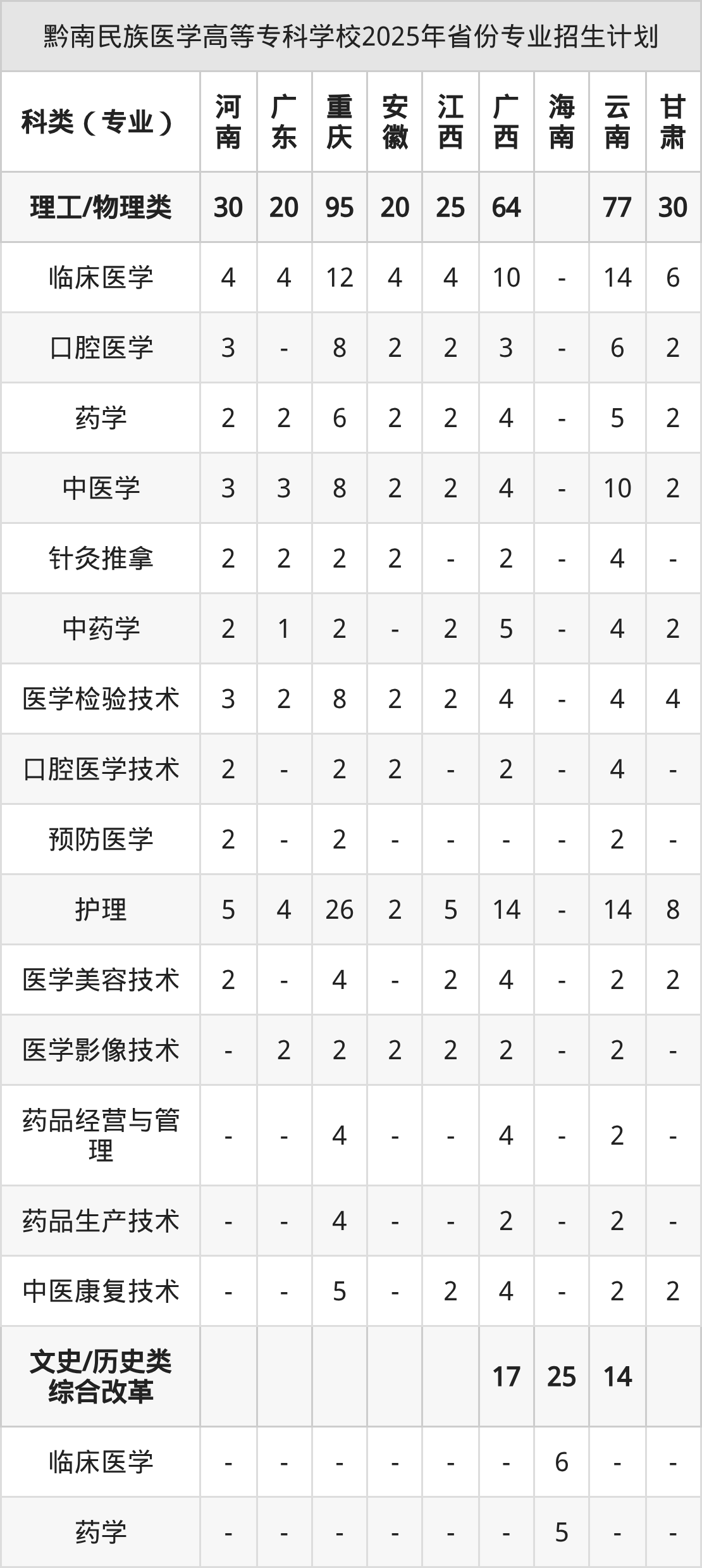 二、黔南民族醫(yī)學(xué)高等??茖W(xué)校2026年招生計劃