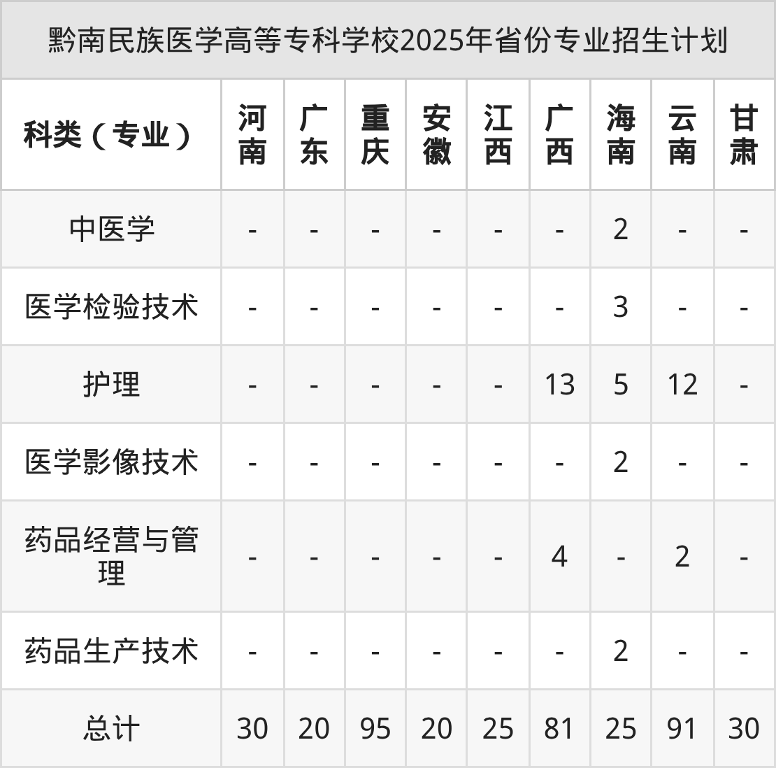 | 黔南民族醫(yī)學(xué)高等??茖W(xué)校2025年??谱畹头謪R總 | ||||