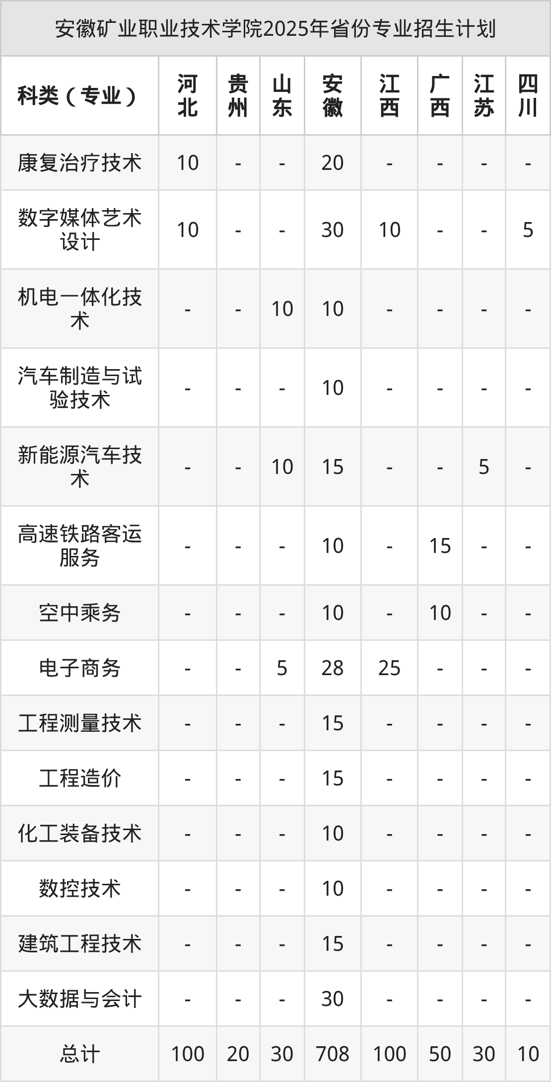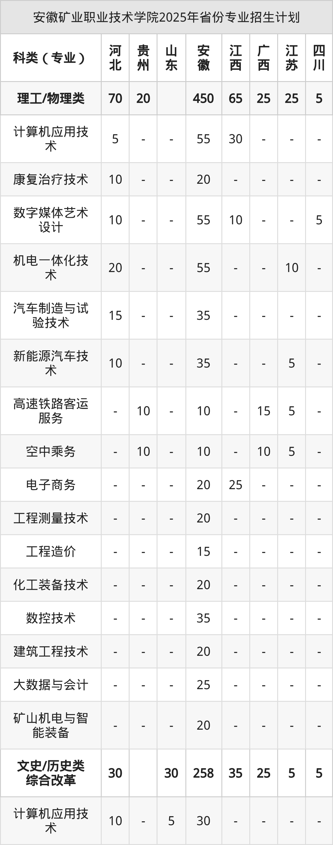 2026年安徽礦業(yè)職業(yè)技術學院專科招生計劃待公布,下面附上2025年數(shù)據(jù),暫供參考: