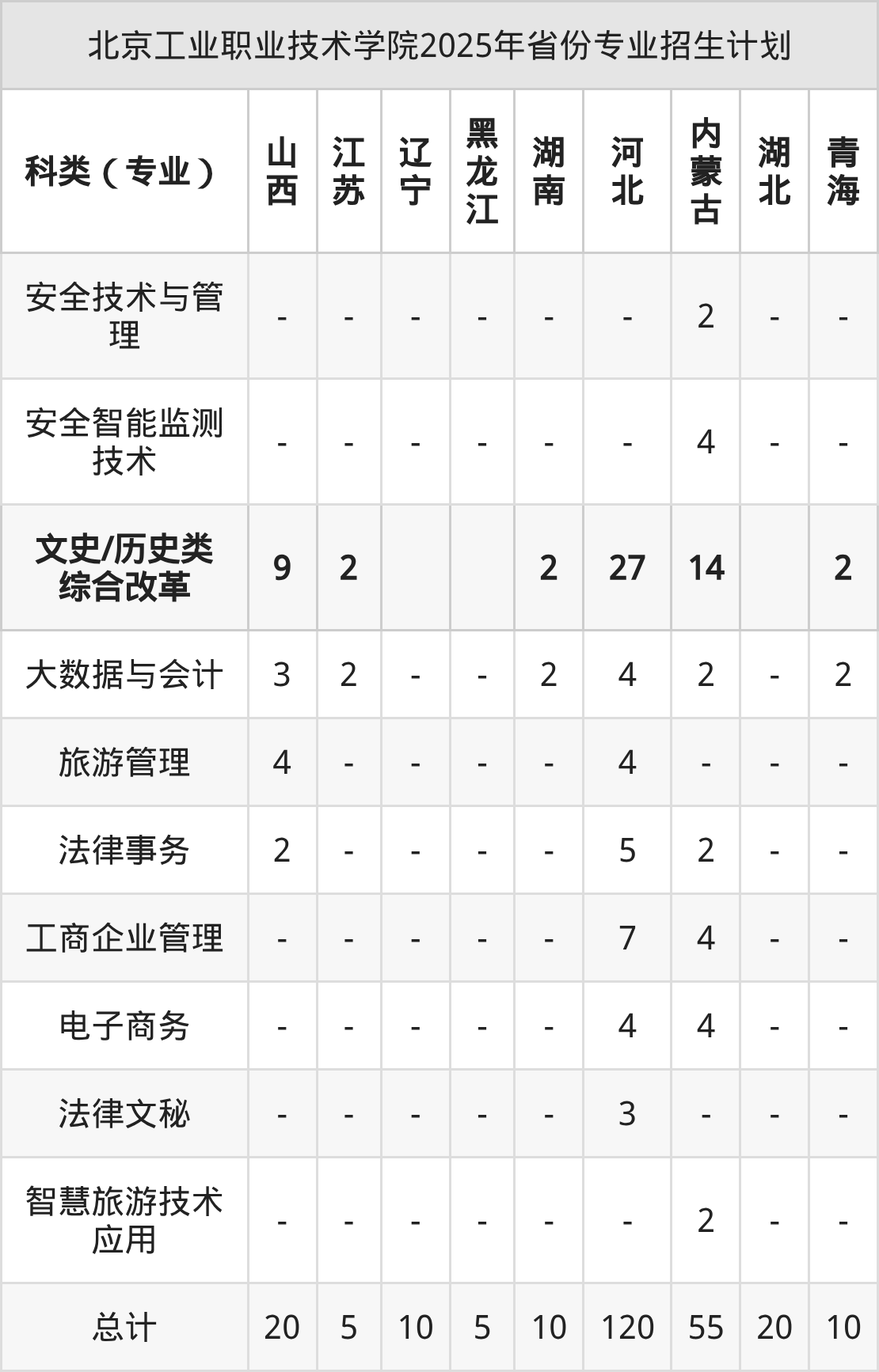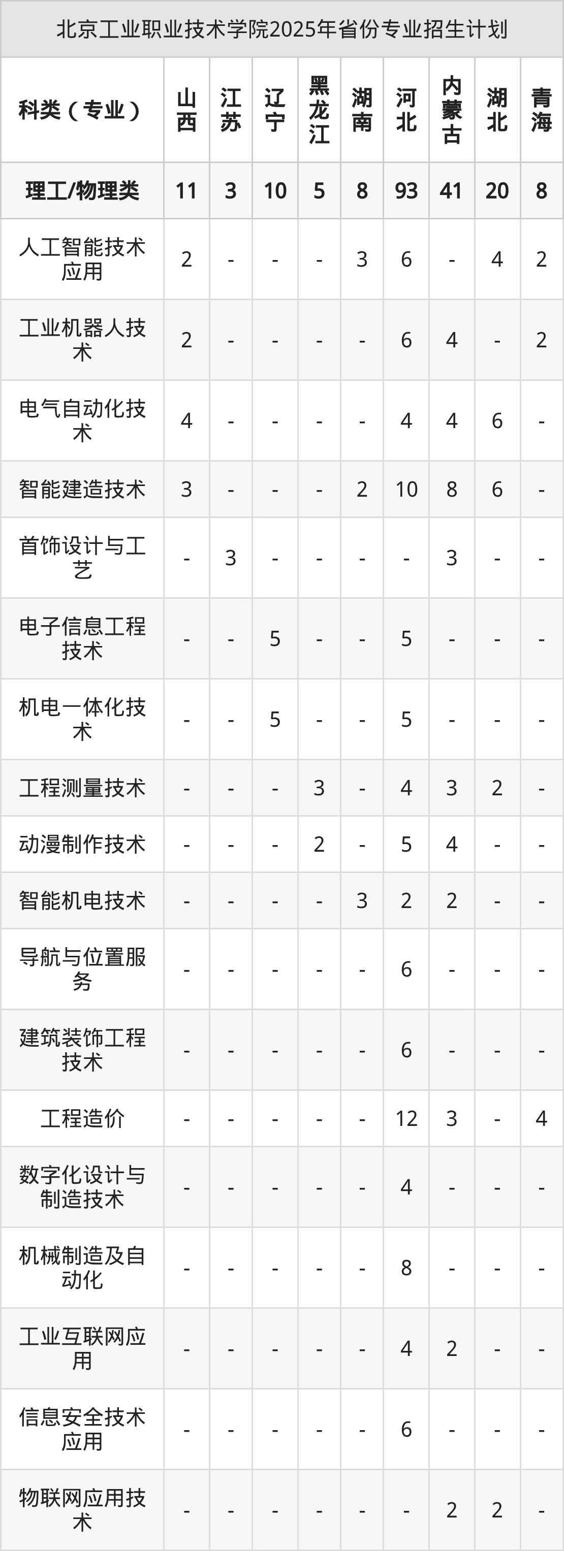 2026年北京工業(yè)職業(yè)技術(shù)學(xué)院專科招生計(jì)劃待公布,下面附上2025年數(shù)據(jù),暫供參考: