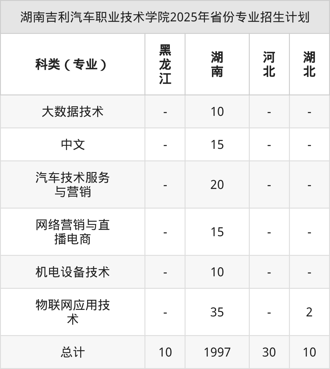 2026年湖南吉利汽車職業(yè)技術(shù)學(xué)院??普猩?jì)劃待公布,下面附上2025年數(shù)據(jù),暫供參考: