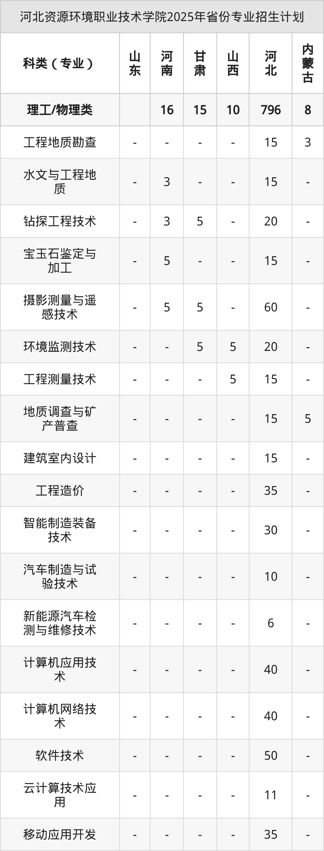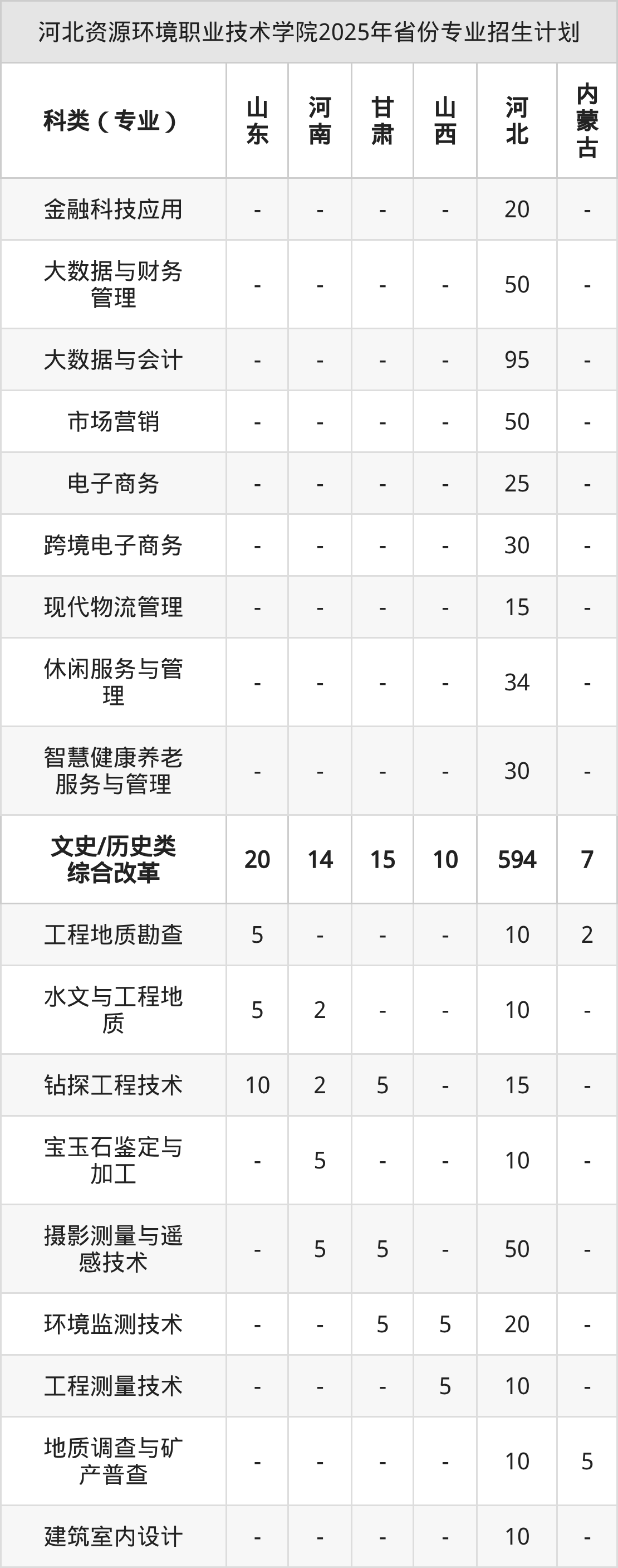 2026年河北資源環(huán)境職業(yè)技術(shù)學(xué)院專科招生計(jì)劃待公布,下面附上2025年數(shù)據(jù),暫供參考: