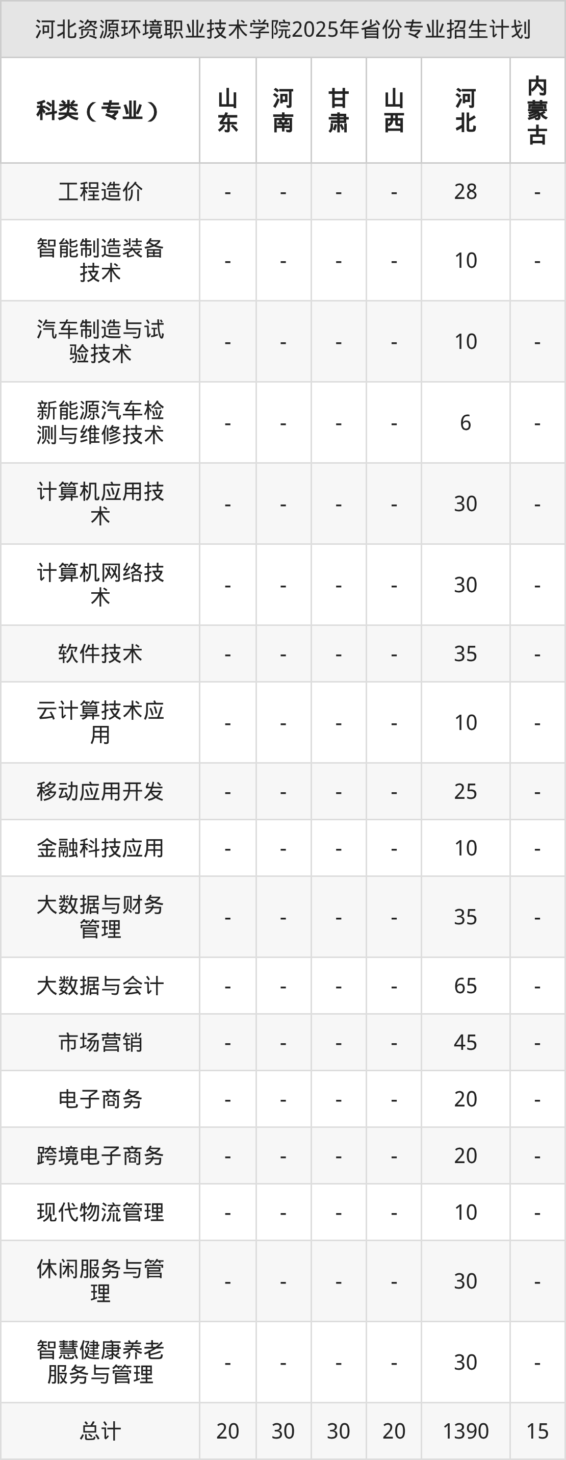 | 河北資源環(huán)境職業(yè)技術(shù)學(xué)院2025年??谱畹头謪R總 | ||||
