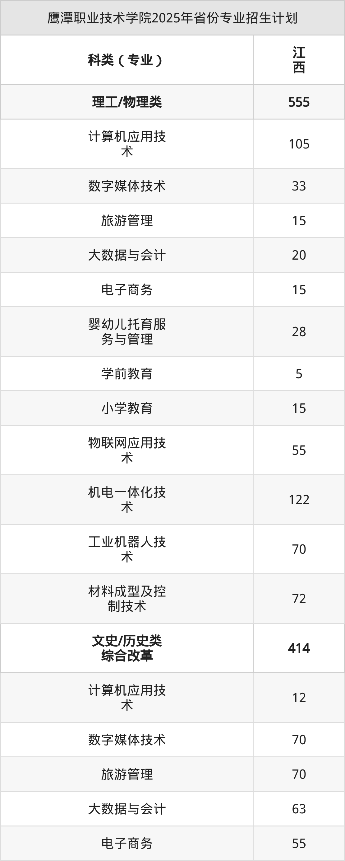 2026年鷹潭職業(yè)技術學院??普猩媱澊迹旅娓缴?025年數(shù)據(jù),暫供參考: