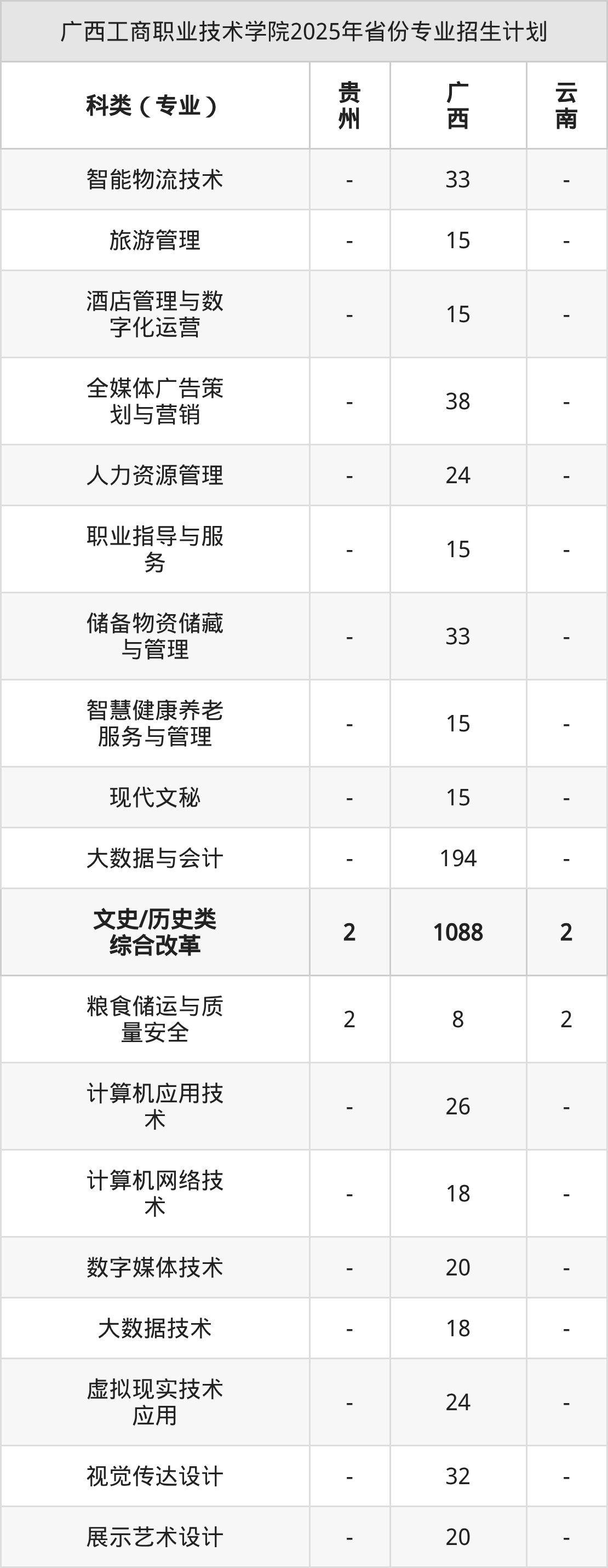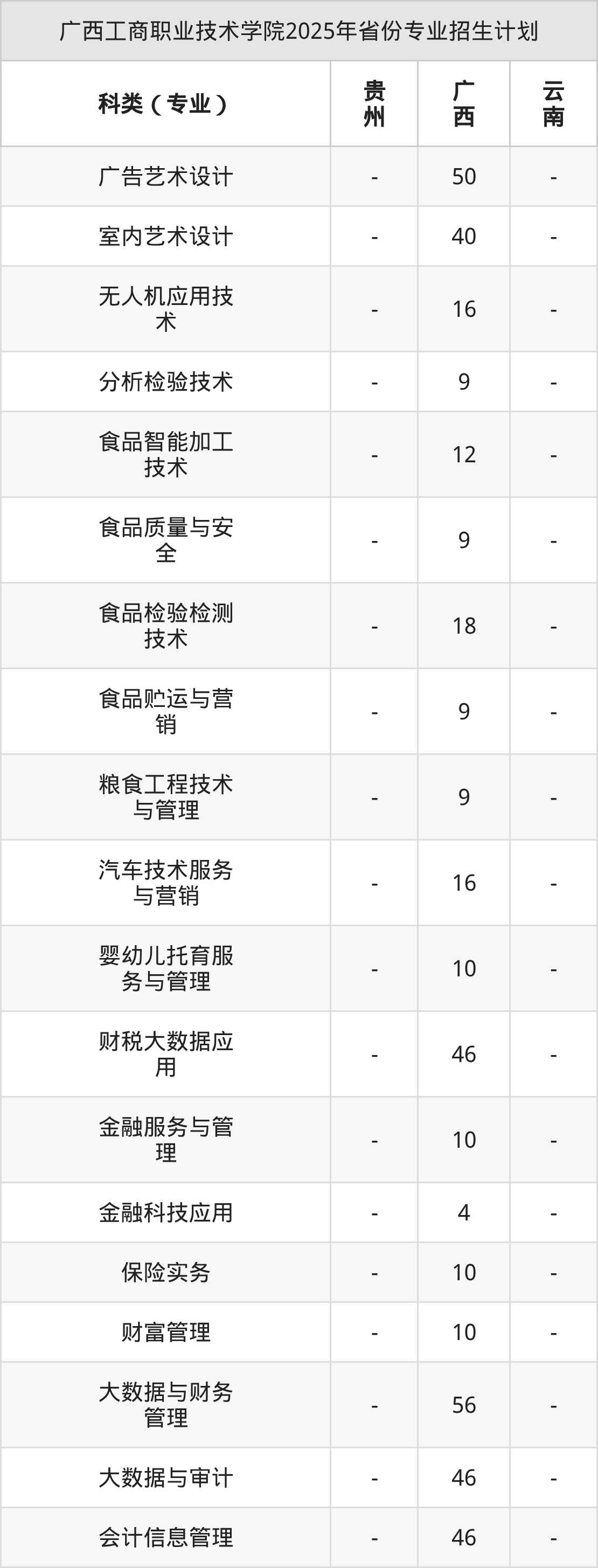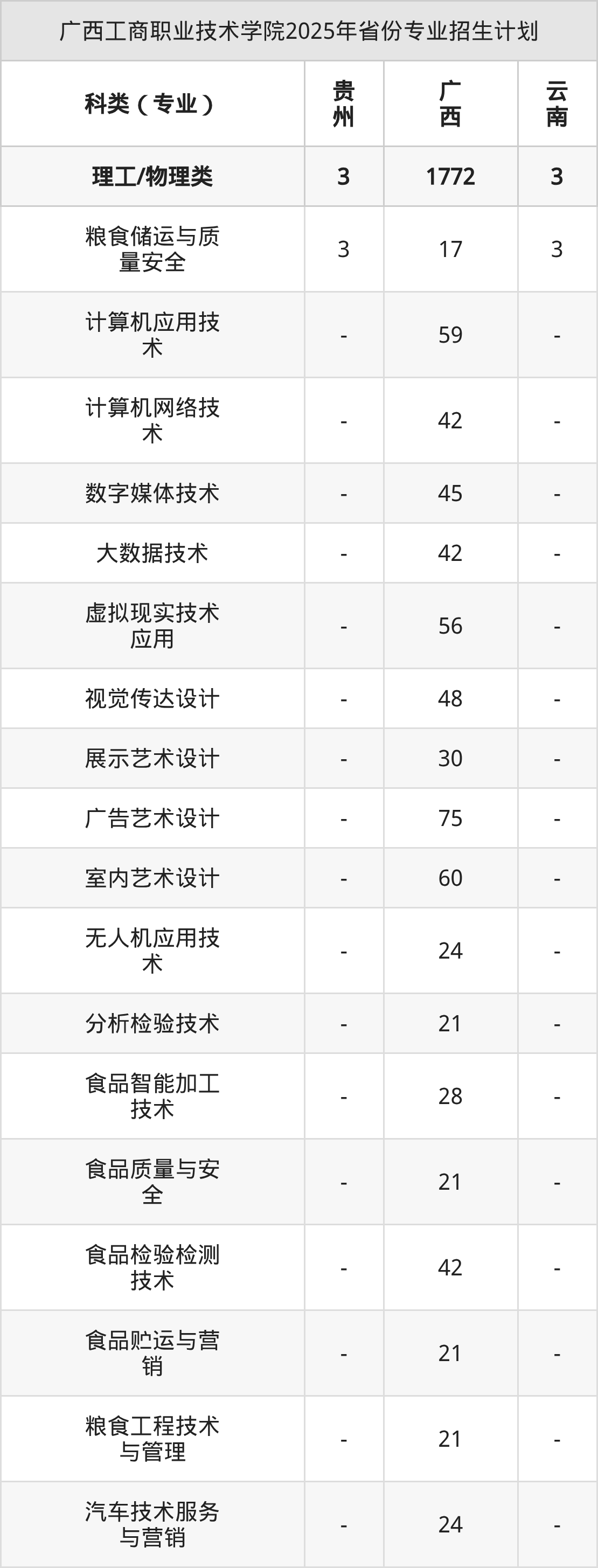 2026年廣西工商職業(yè)技術(shù)學(xué)院??普猩媱澊?,下面附上2025年數(shù)據(jù),暫供參考: