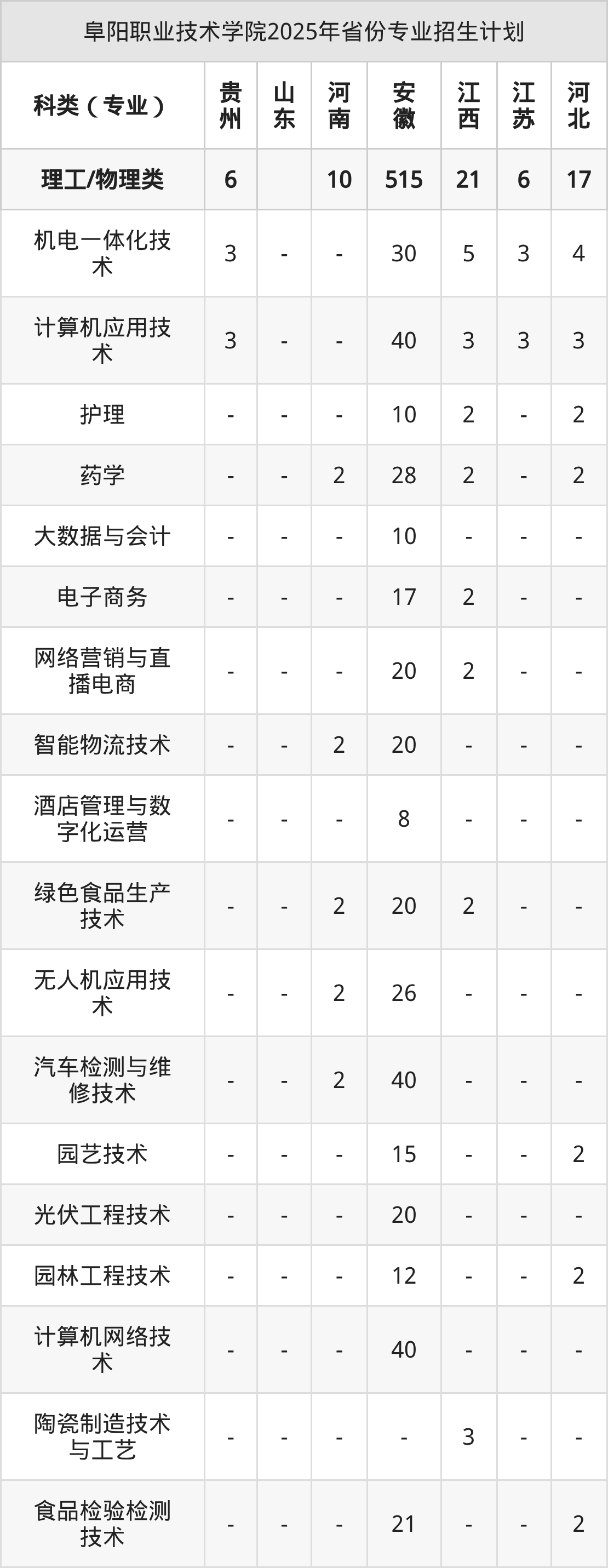 2026年阜陽(yáng)職業(yè)技術(shù)學(xué)院專科招生計(jì)劃待公布,下面附上2025年數(shù)據(jù),暫供參考: