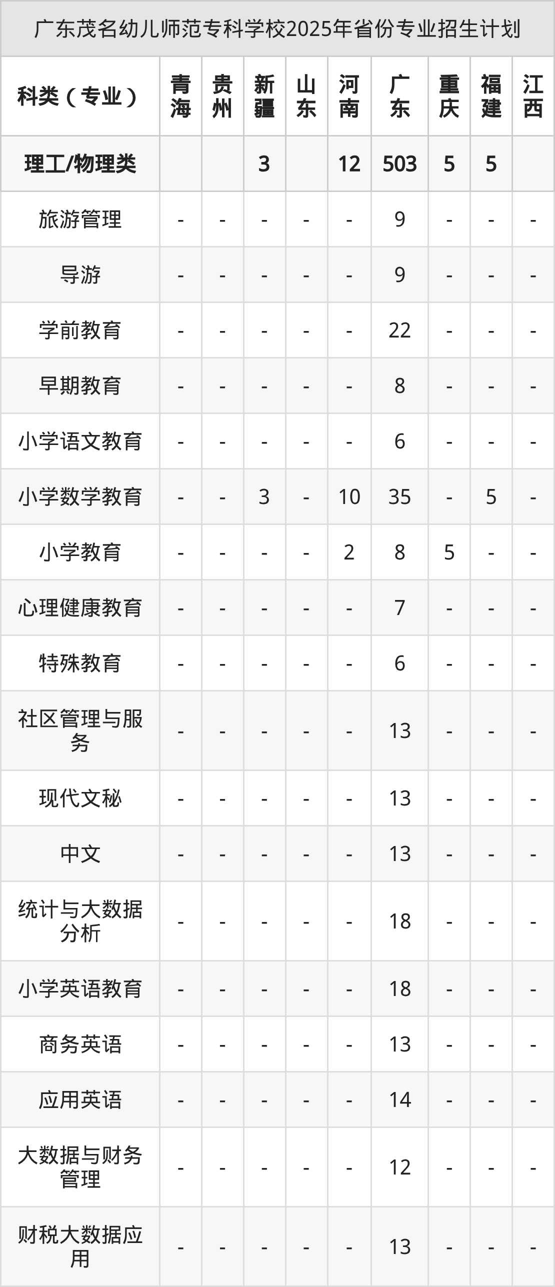 | 廣東茂名幼兒師范??茖W(xué)校2025年??谱畹头謪R總 | ||||