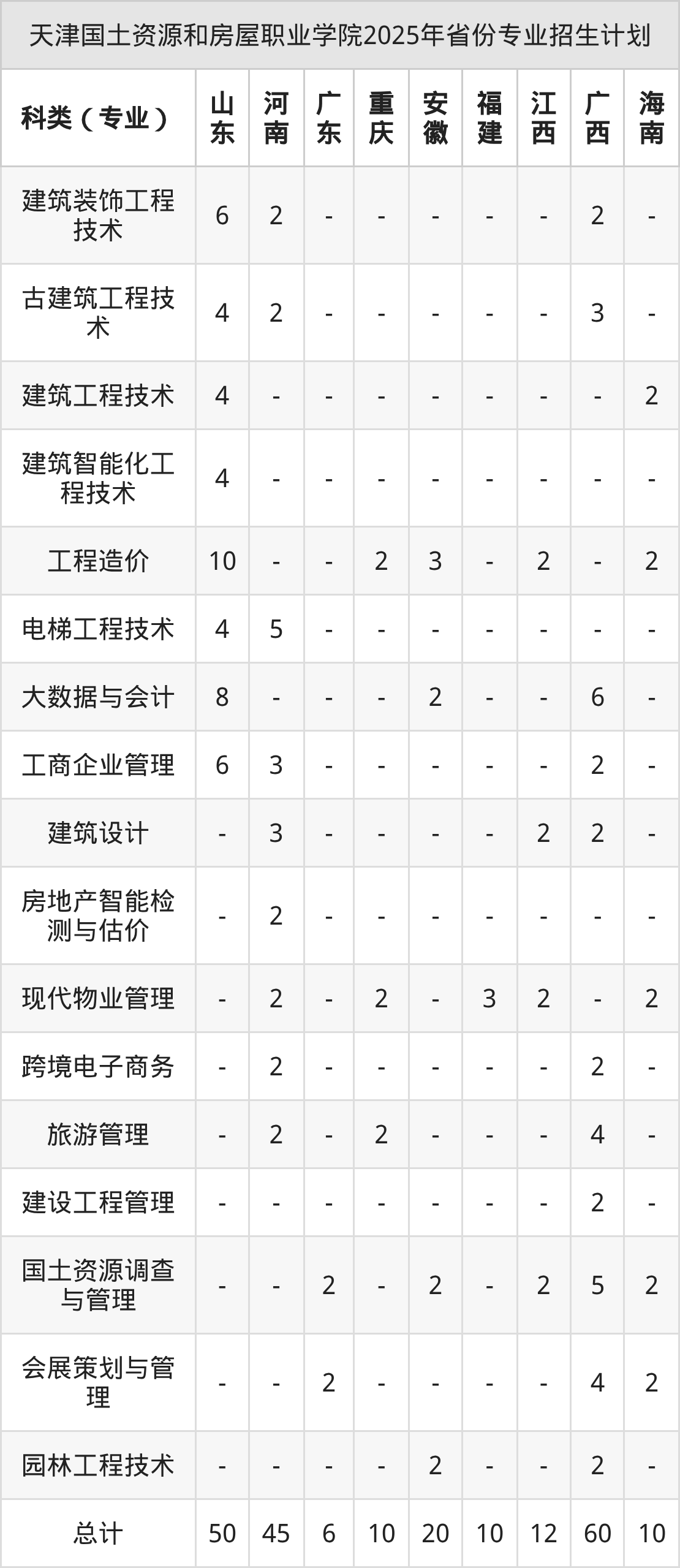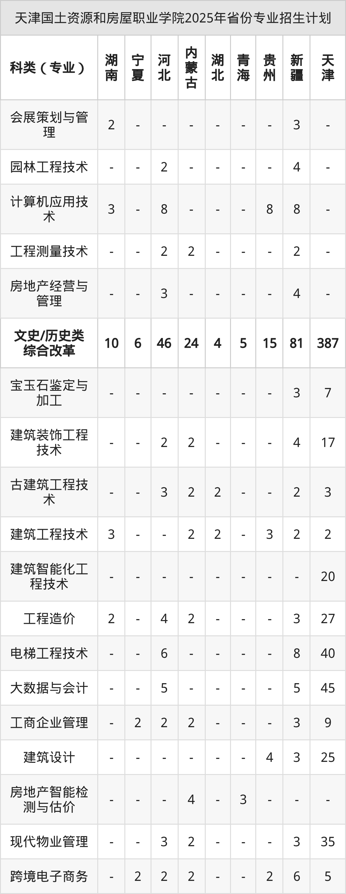 2026年天津國土資源和房屋職業(yè)學(xué)院??普猩媱澊?,下面附上2025年數(shù)據(jù),暫供參考: