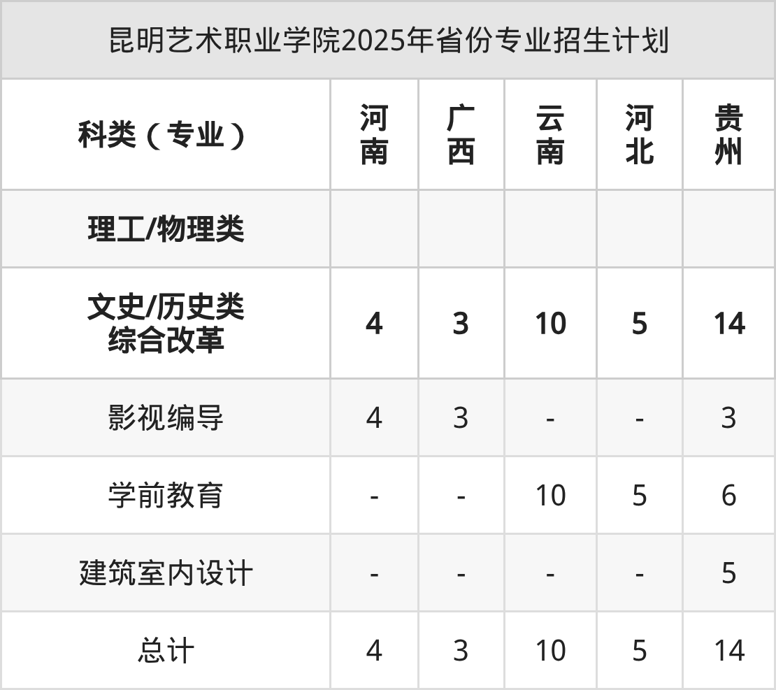 2026年昆明藝術(shù)職業(yè)學(xué)院??普猩?jì)劃待公布,下面附上2025年數(shù)據(jù),暫供參考: