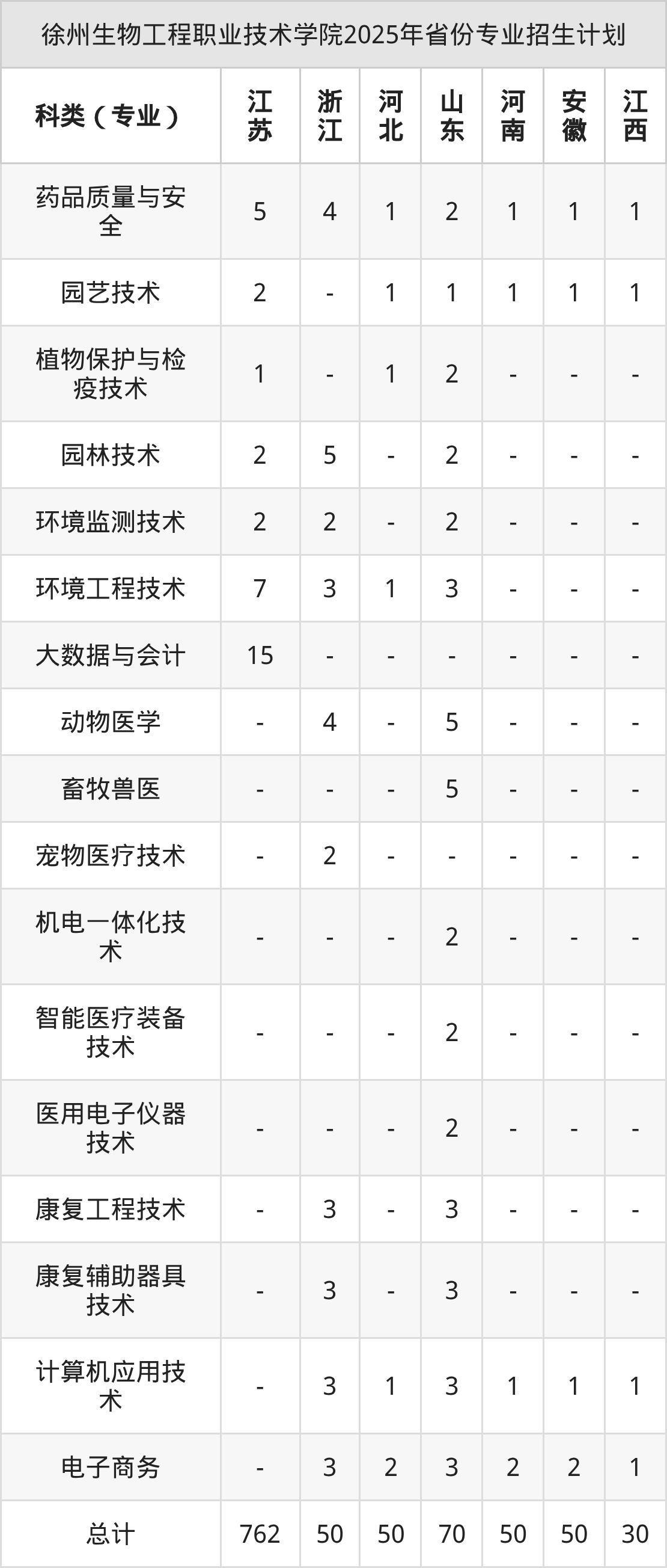 而各省份的招生計劃數(shù)為江蘇762人,浙江50人,河北50人,山東70人,河南50人等。
