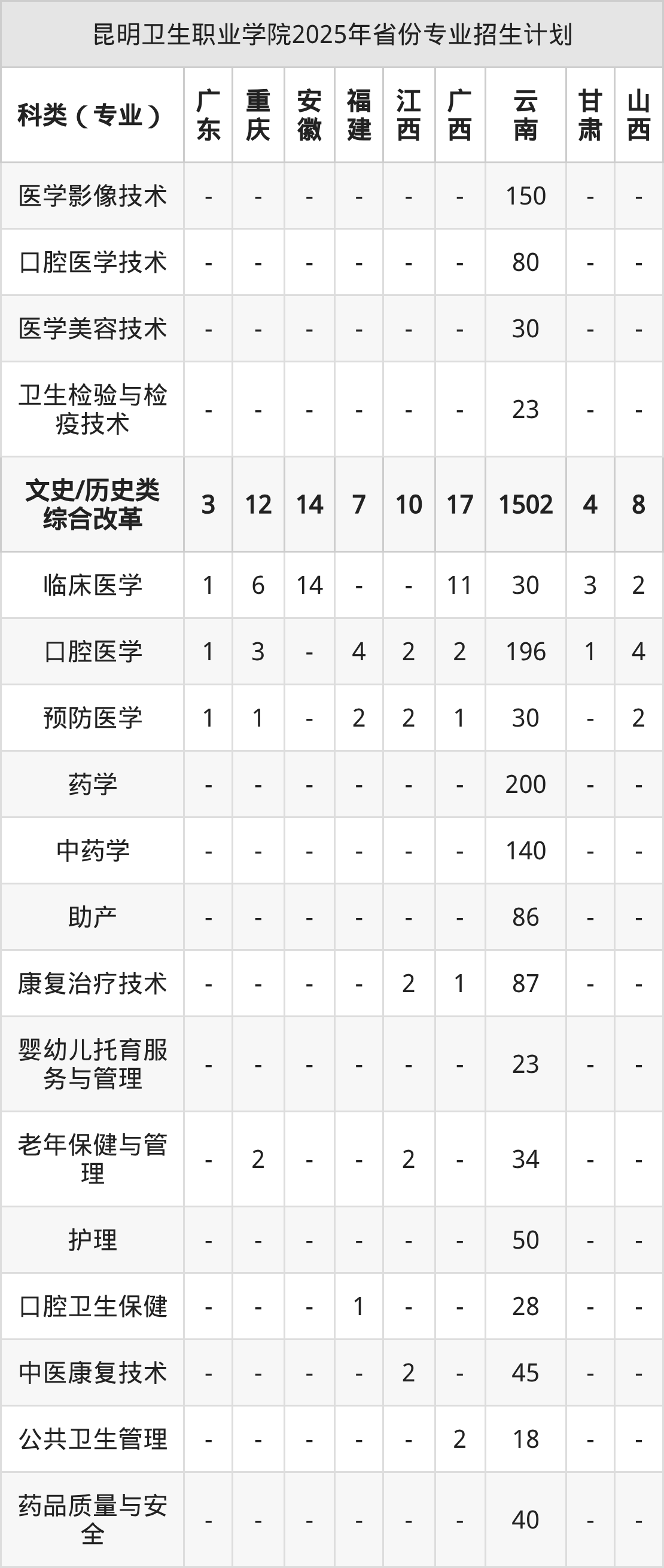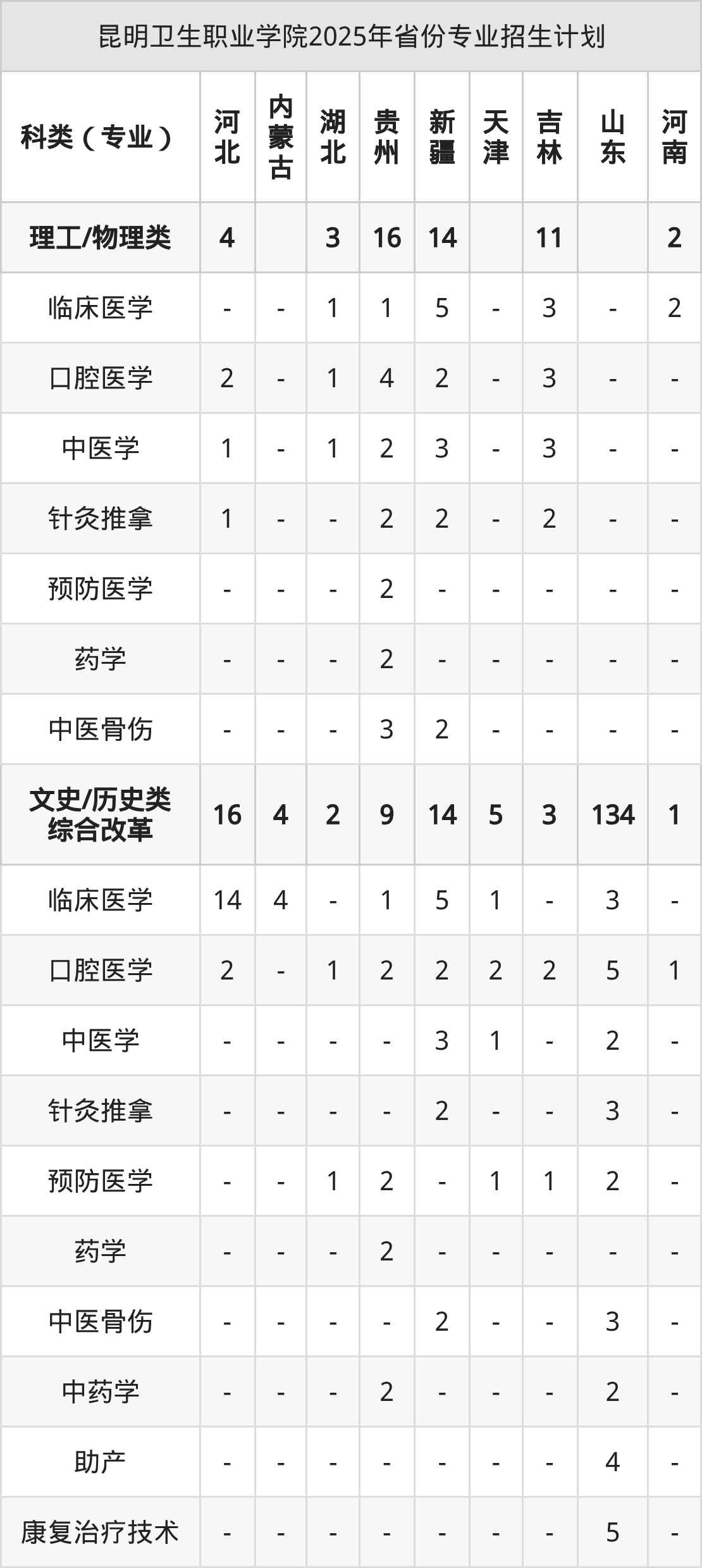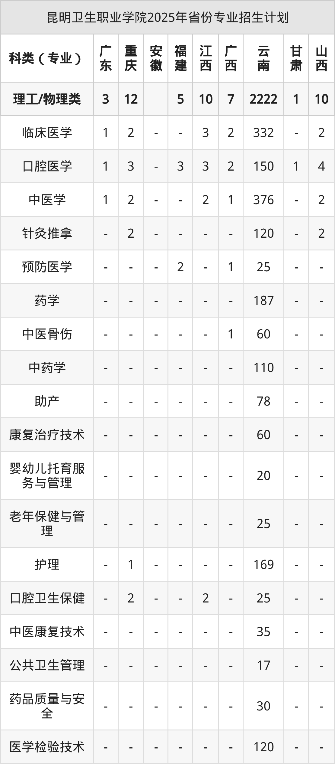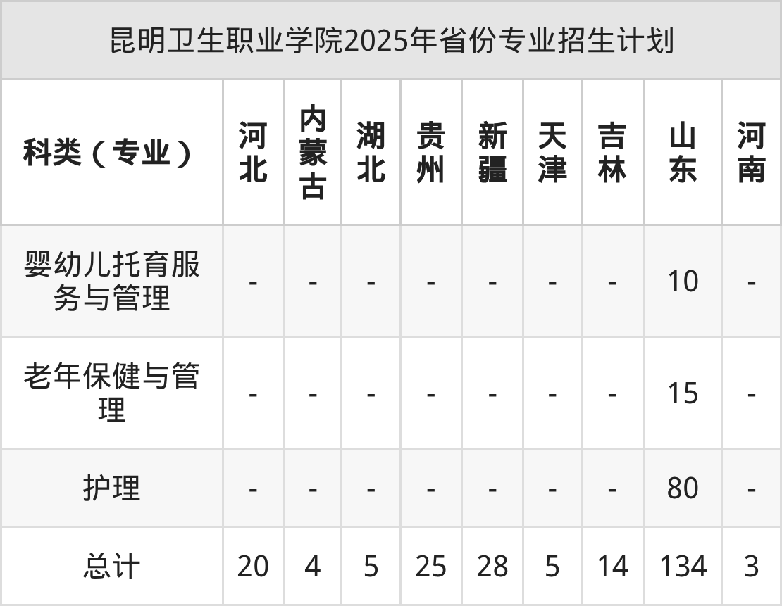 2026年昆明衛(wèi)生職業(yè)學(xué)院??普猩媱澊迹旅娓缴?025年數(shù)據(jù),暫供參考: