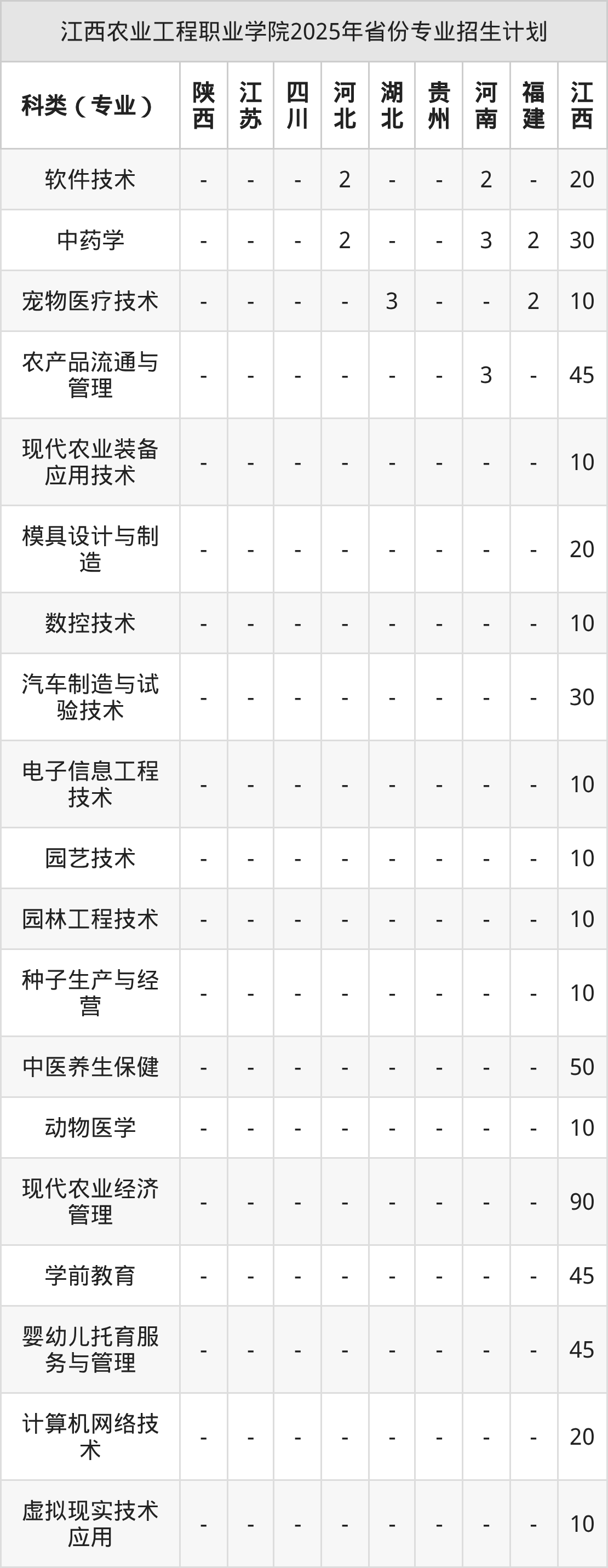 2026年江西農(nóng)業(yè)工程職業(yè)學(xué)院??普猩媱澊?,下面附上2025年數(shù)據(jù),暫供參考: