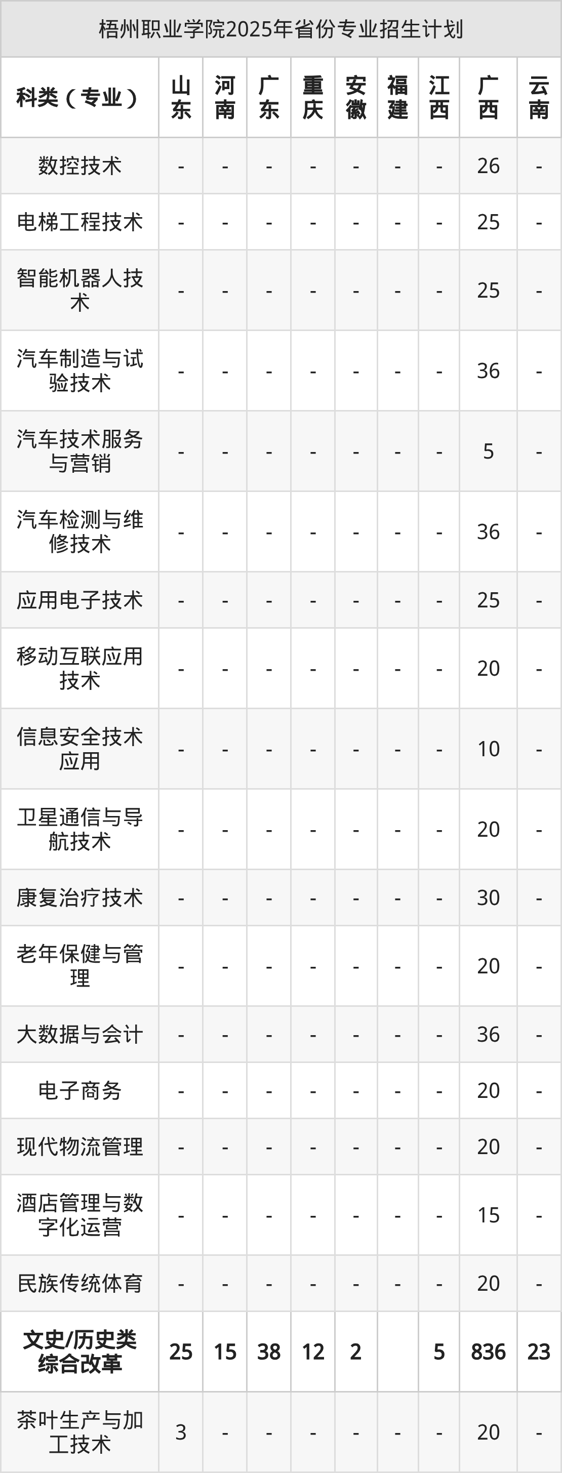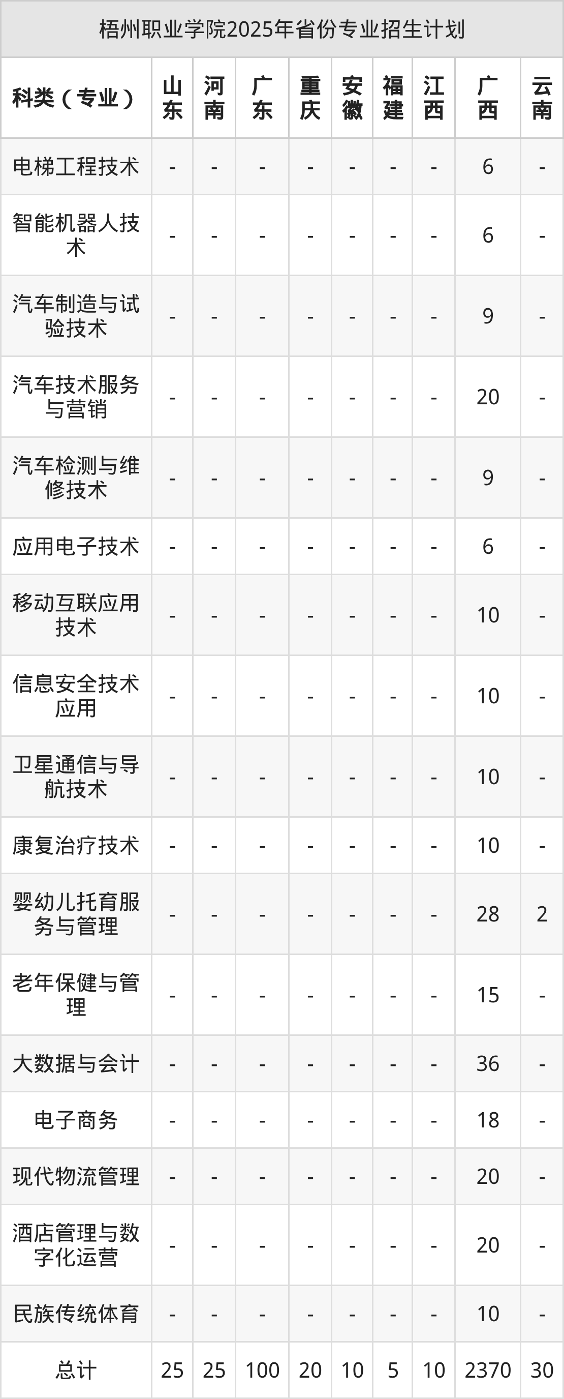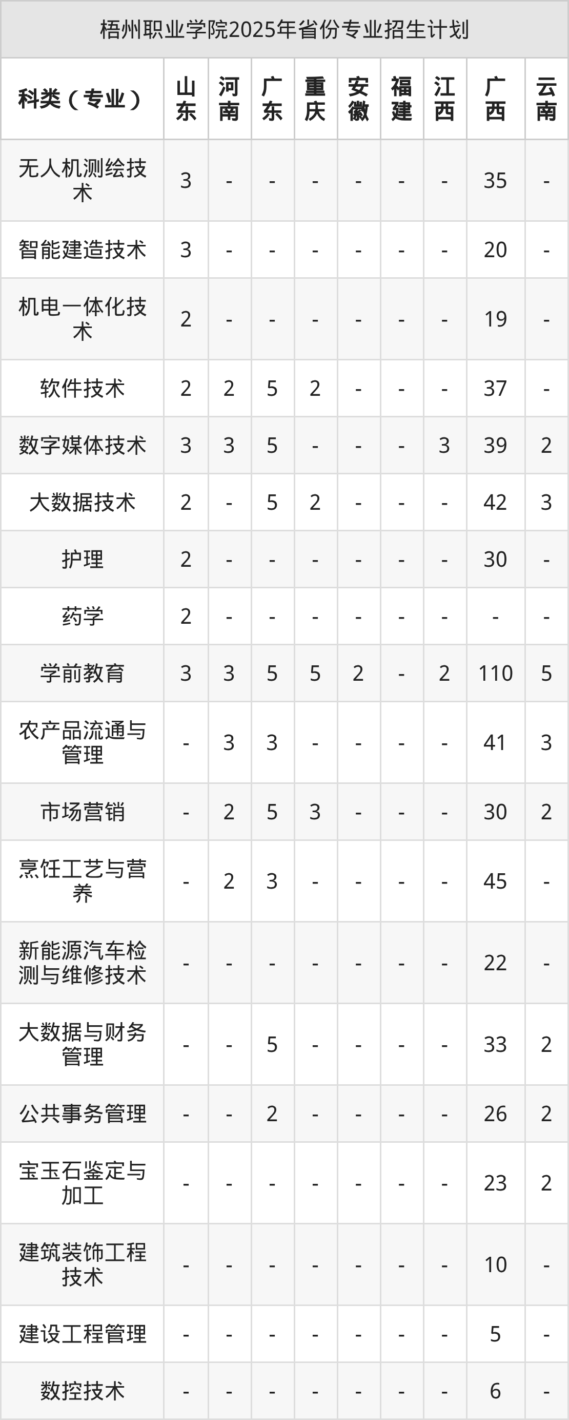 2026年梧州職業(yè)學院??普猩媱澊?,下面附上2025年數(shù)據(jù),暫供參考: