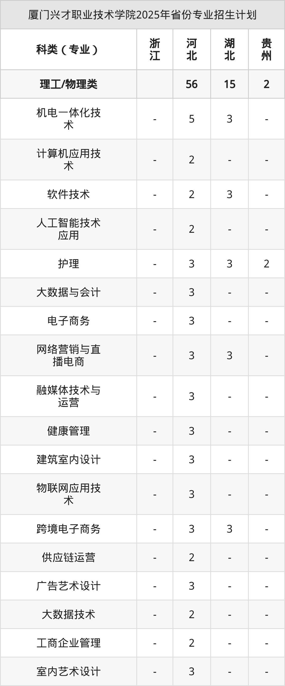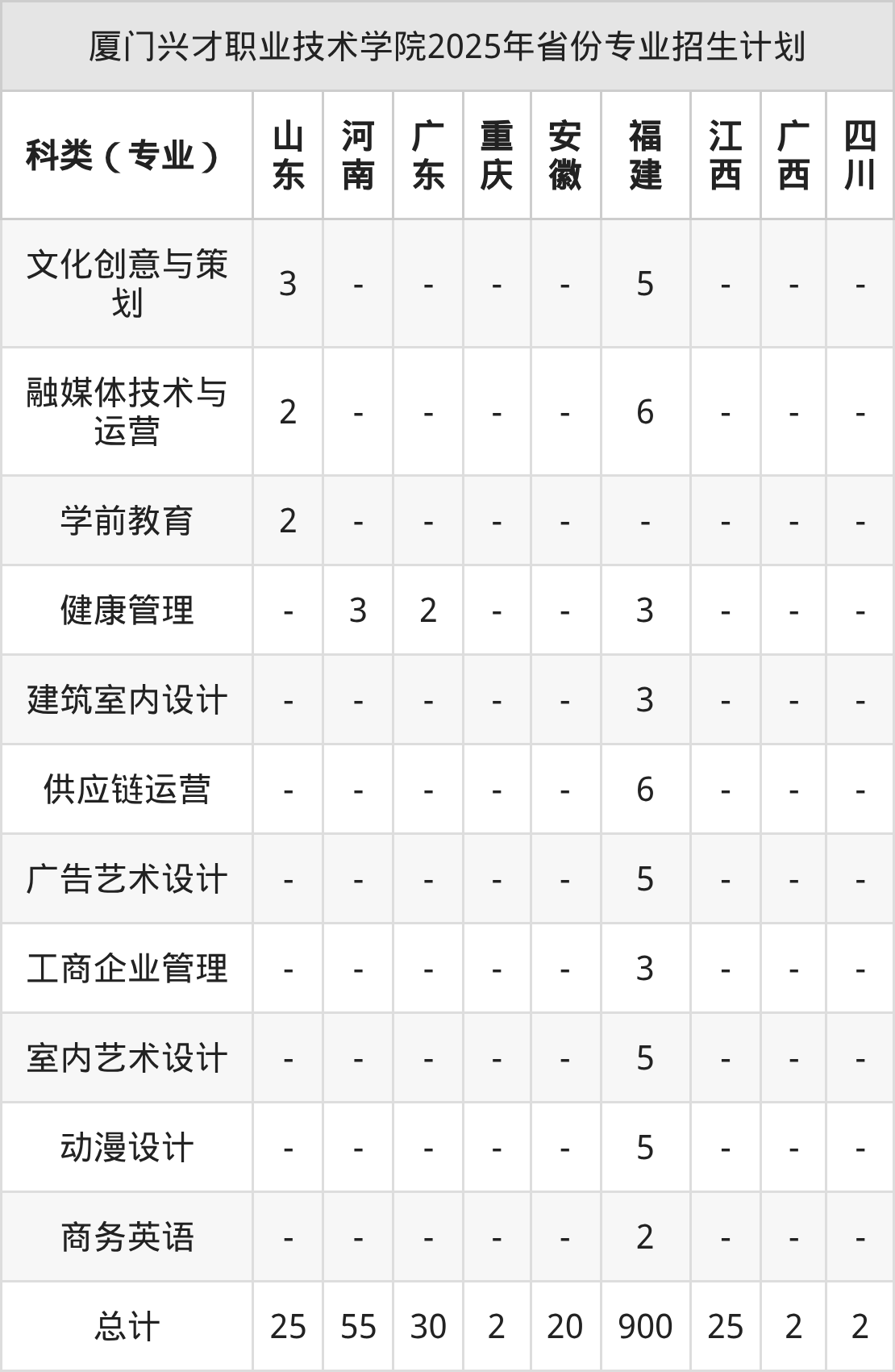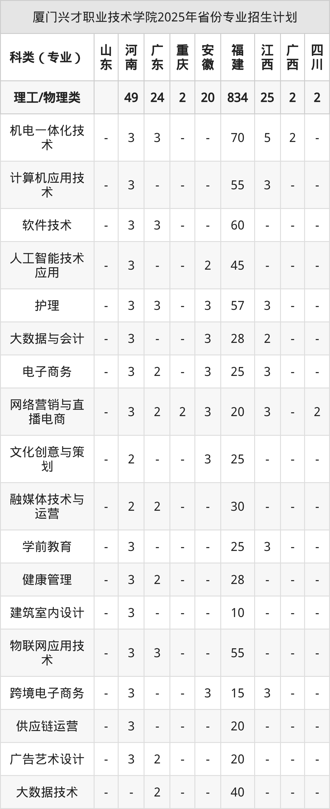 2026年廈門興才職業(yè)技術學院??普猩媱澊迹旅娓缴?025年數(shù)據(jù),暫供參考: