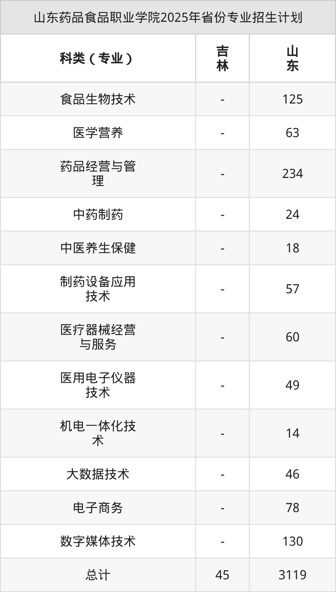 2026年山東藥品食品職業(yè)學院??普猩媱澊迹旅娓缴?025年數(shù)據(jù),暫供參考: