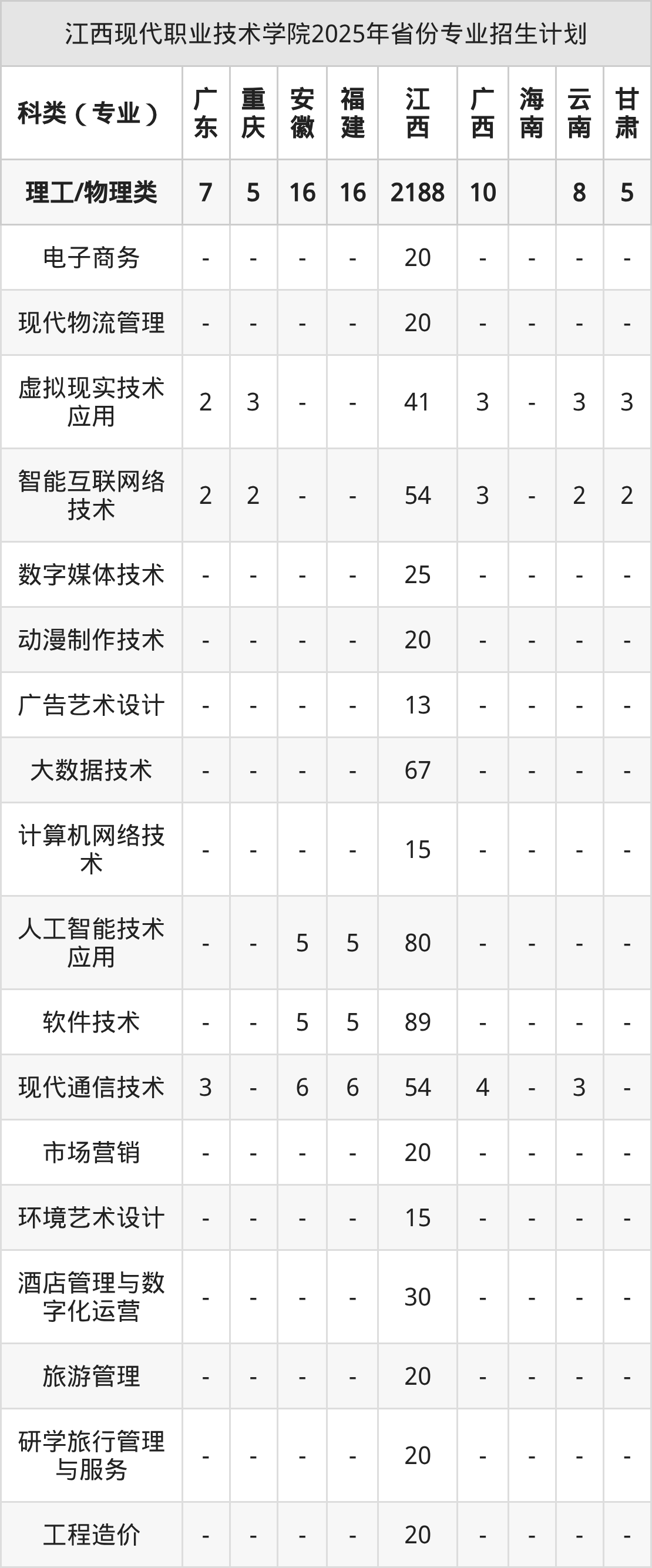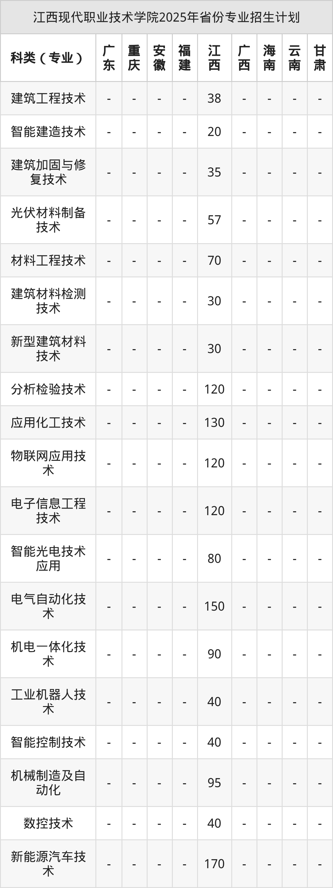 2026年江西現(xiàn)代職業(yè)技術(shù)學(xué)院專科招生計劃待公布,下面附上2025年數(shù)據(jù),暫供參考: