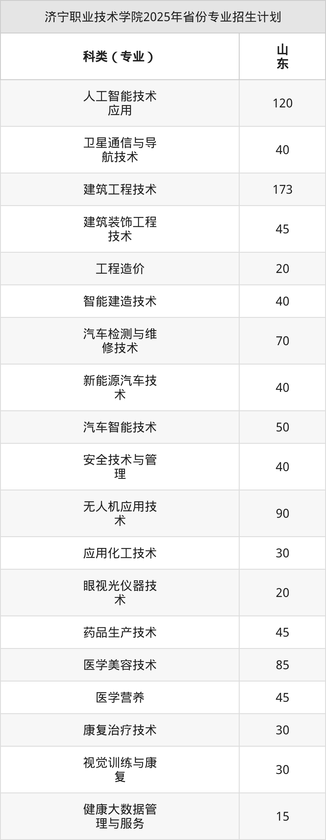 2026年濟寧職業(yè)技術學院??普猩媱澊?,下面附上2025年數據,暫供參考: