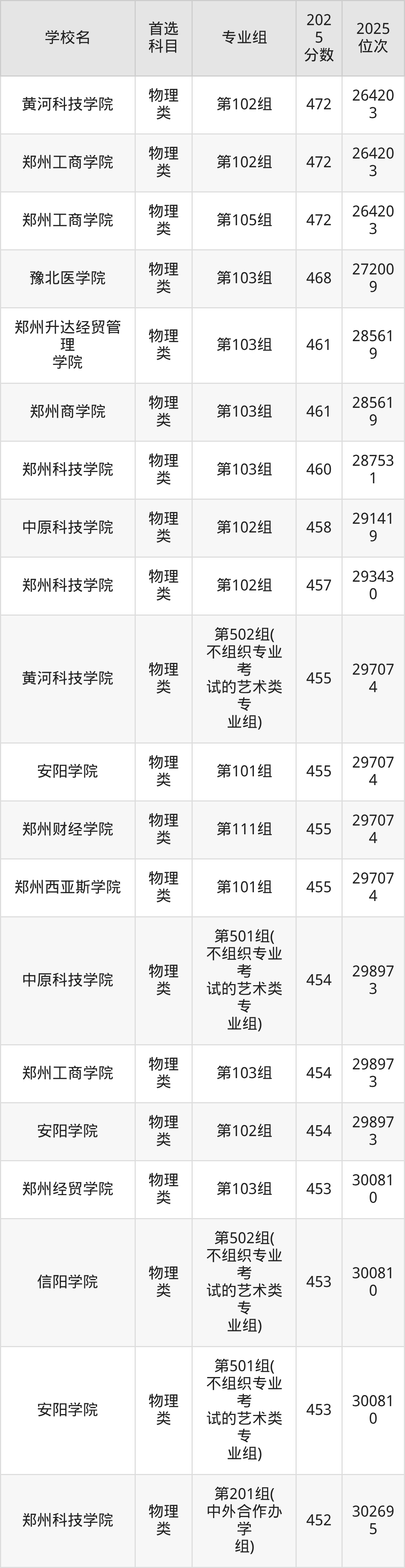 2025年河南本科批次線歷史類471分、物理類427分。因此河南考生如果想留在省內(nèi)讀民辦二本的話,歷史類考生至少需要過(guò)線8分、而物理類考生剛過(guò)本科線就行。
