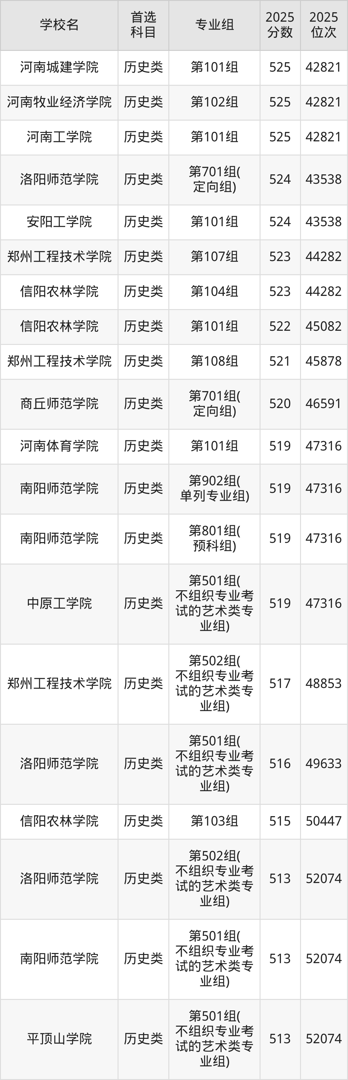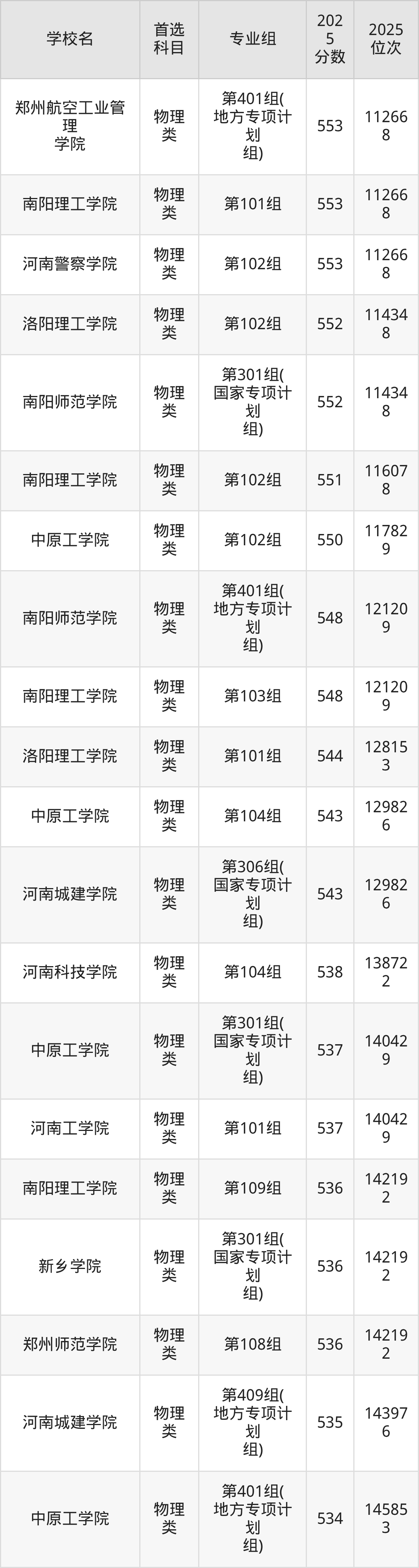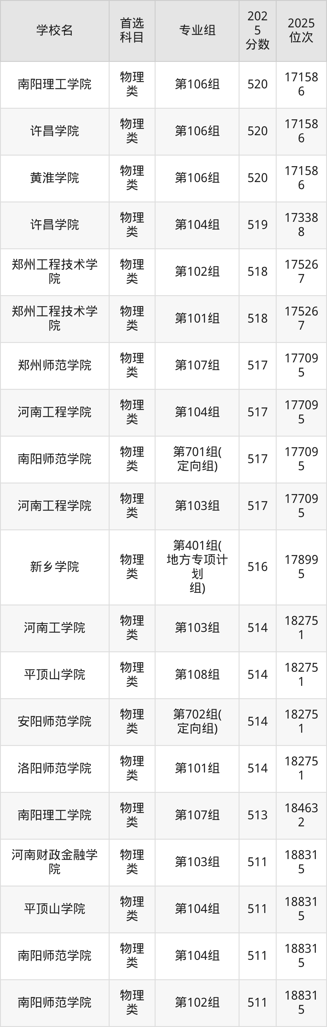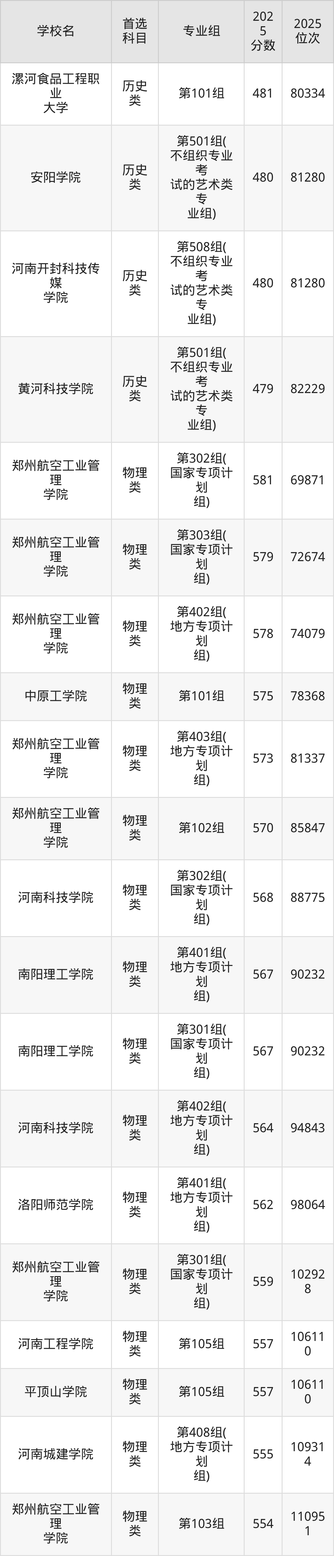 (5)河南科技學(xué)院第401組(地方專項(xiàng)計(jì)劃組):559分、21636名;