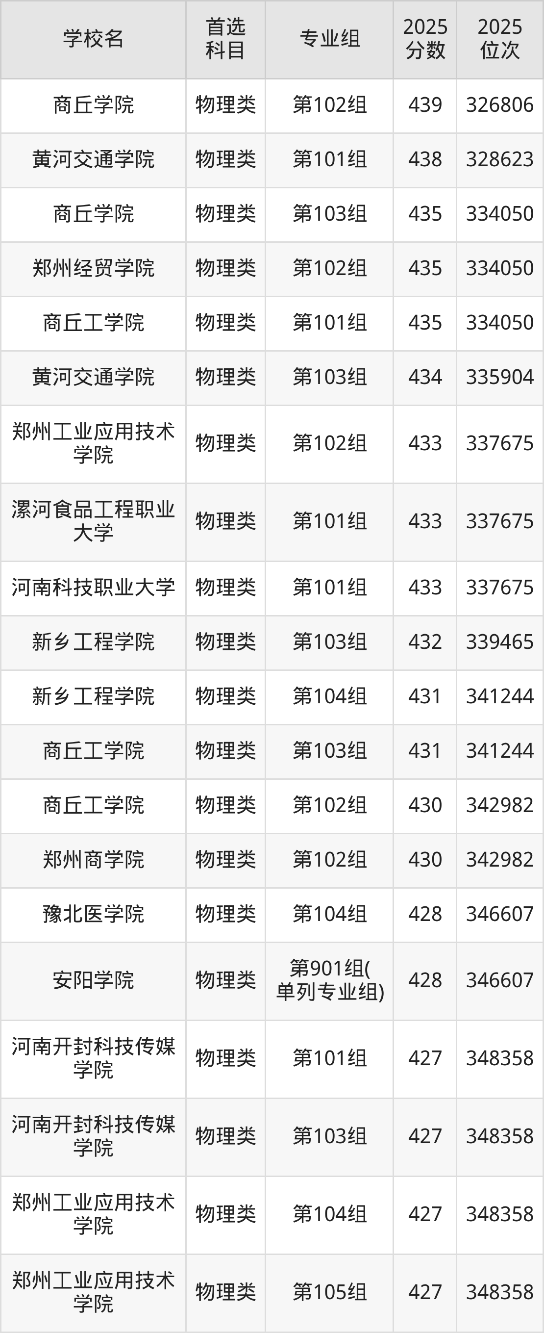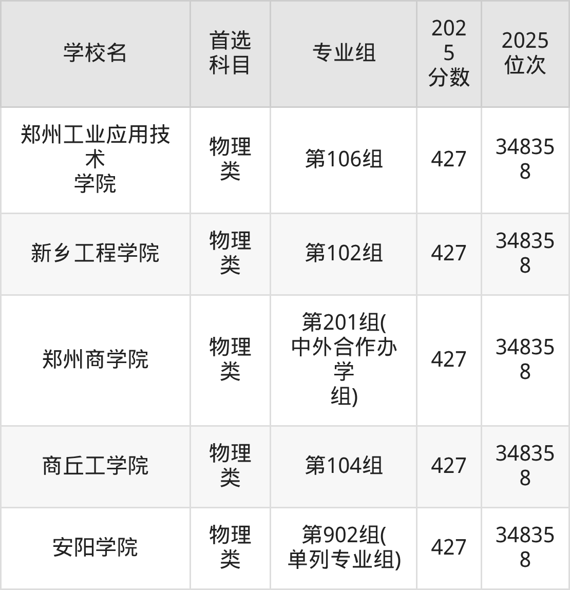 (3)鄭州商學(xué)院第201組(中外合作辦學(xué)組):427分、348358名;