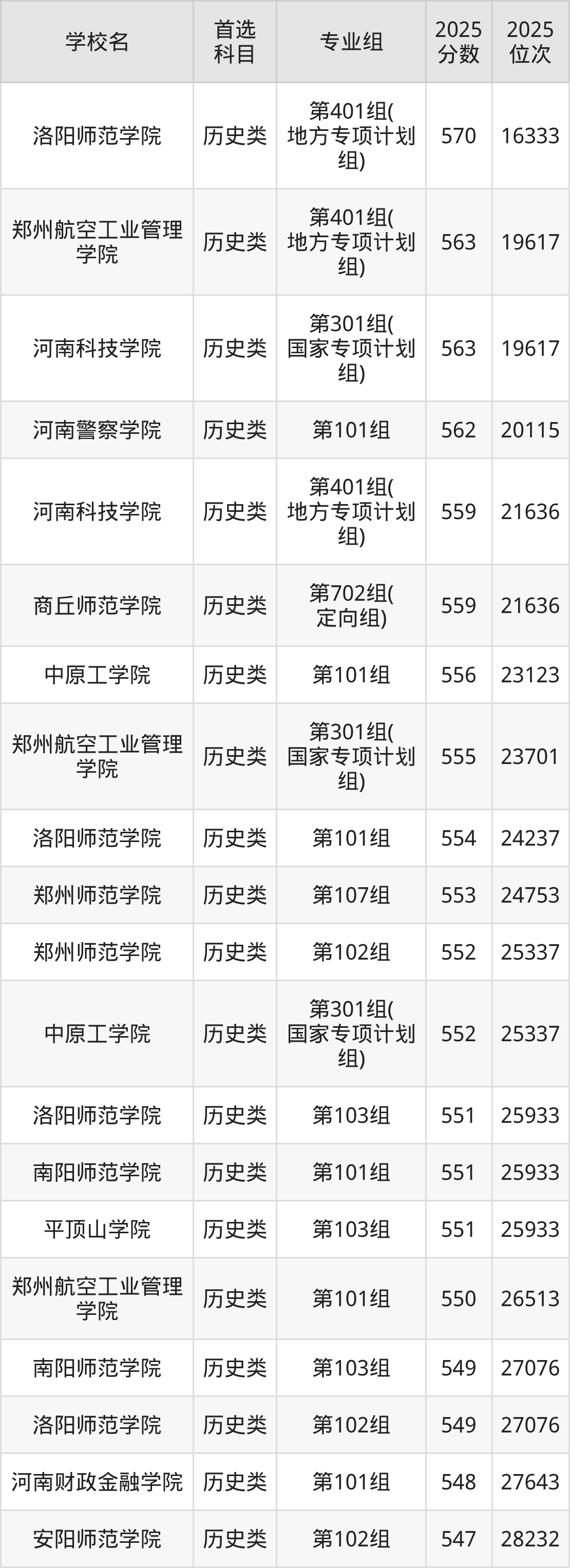 (1)洛陽(yáng)師范學(xué)院第401組(地方專項(xiàng)計(jì)劃組):570分、16333名;