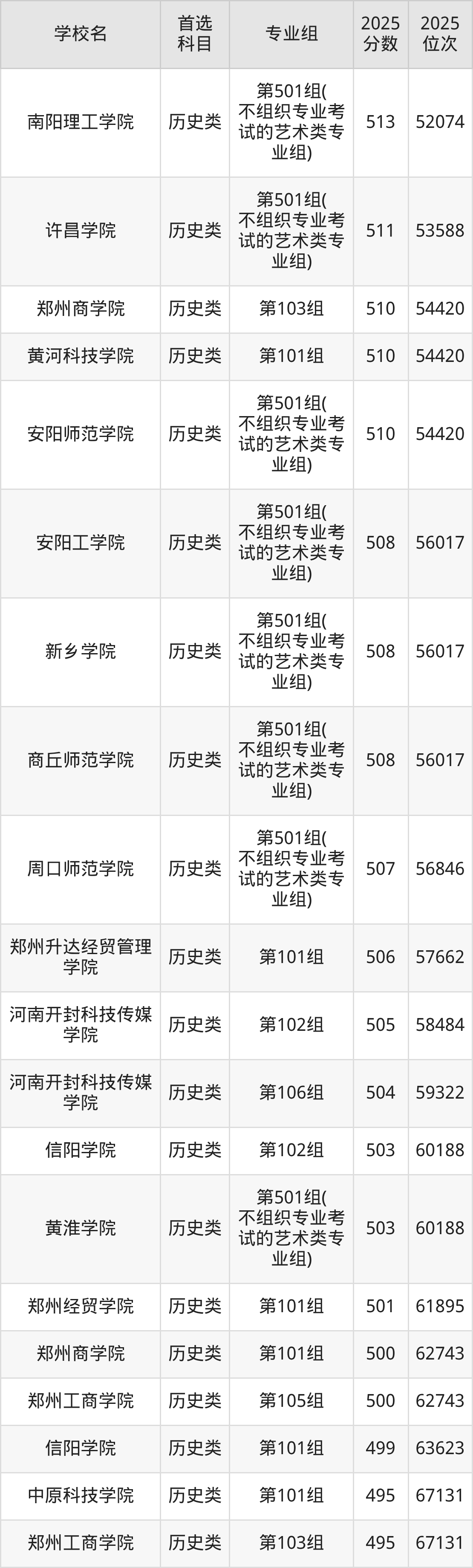 (5)黃河科技學(xué)院第501組(不組織專業(yè)考試的藝術(shù)類專業(yè)組):479分、82229名;