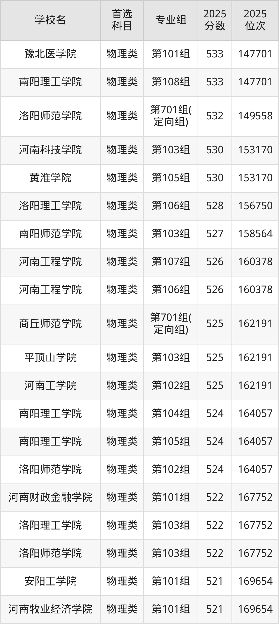 (4)河南警察學(xué)院第101組:562分、20115名;