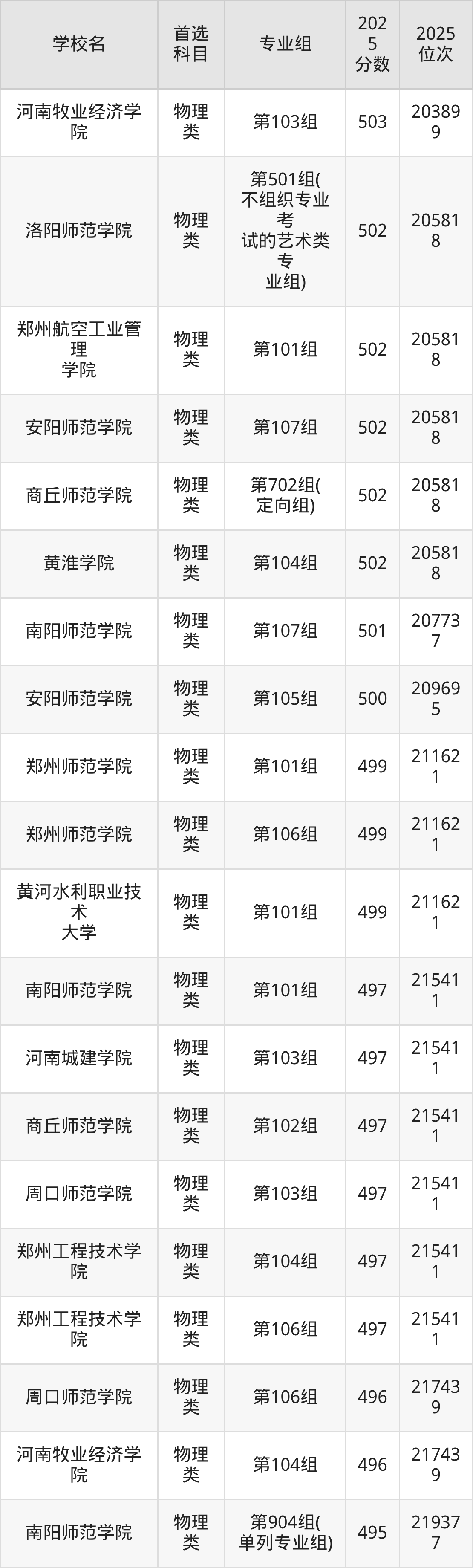 2025年河南公辦二本大學(xué)最低錄取分?jǐn)?shù)線是503分,收分最低的學(xué)校為黃淮學(xué)院第501組(不組織專業(yè)考試的藝術(shù)類專業(yè)組)。
