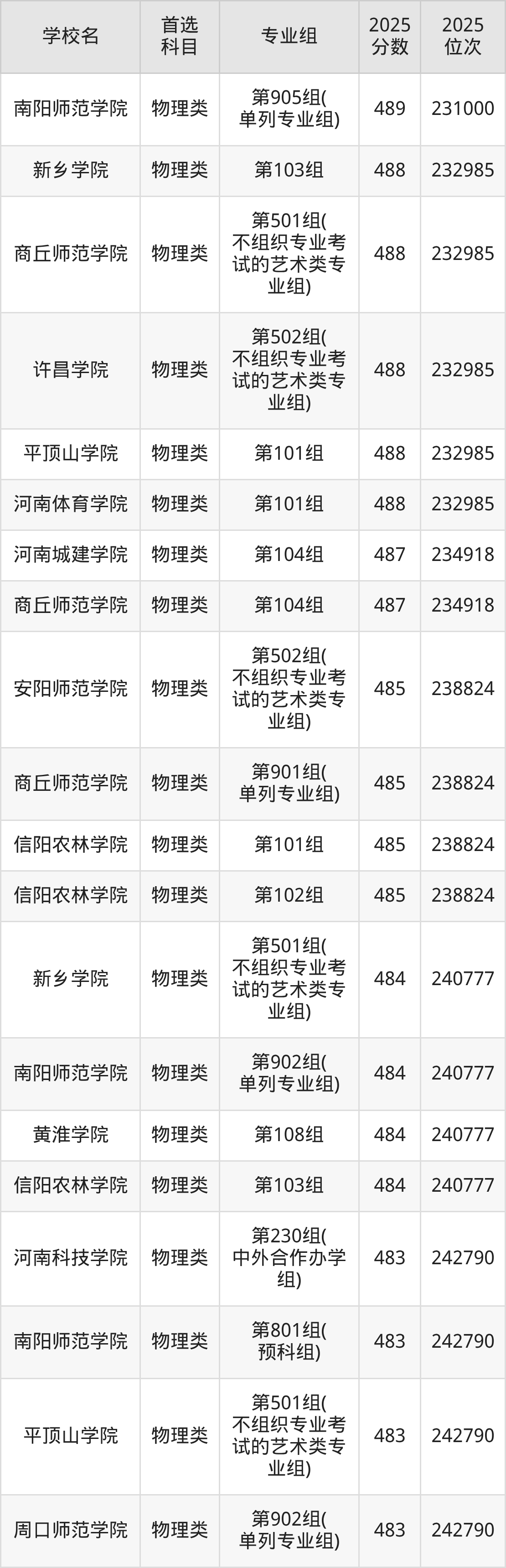 (1)周口師范學(xué)院第902組(單列專業(yè)組):483分、242790名;