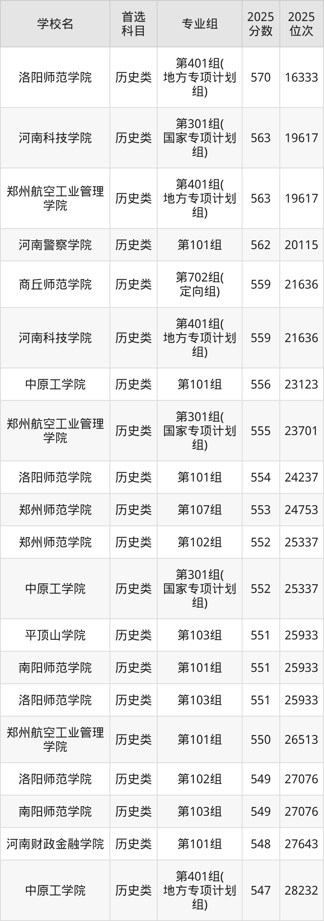 (1)洛陽師范學(xué)院第401組(地方專項計劃組):570分、16333名;