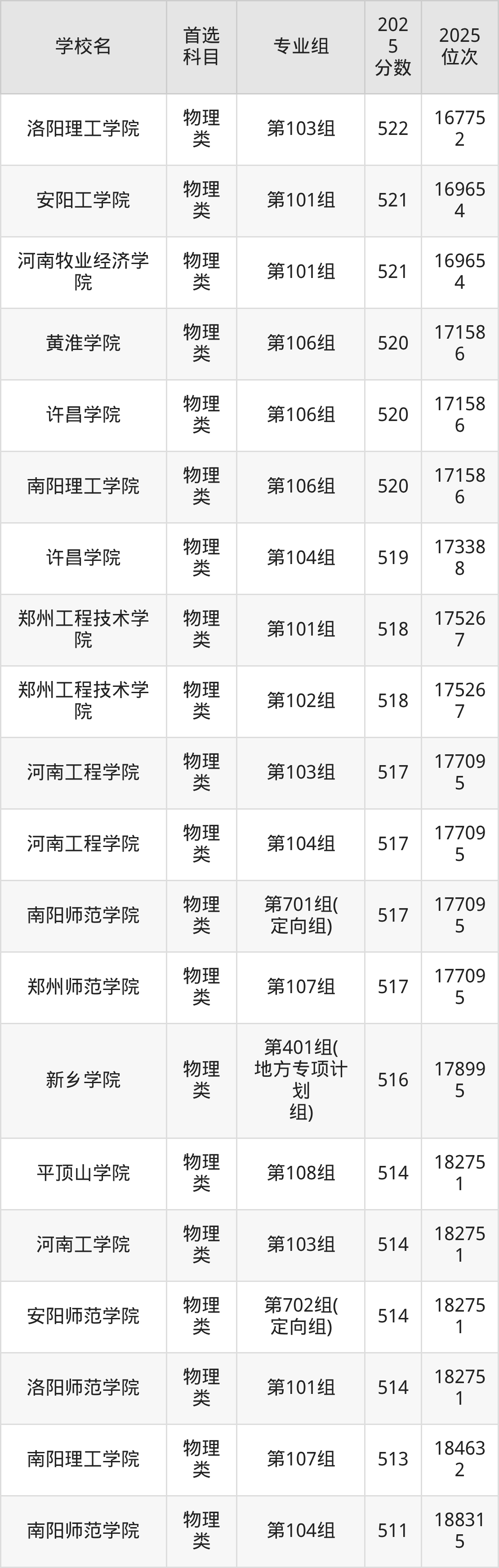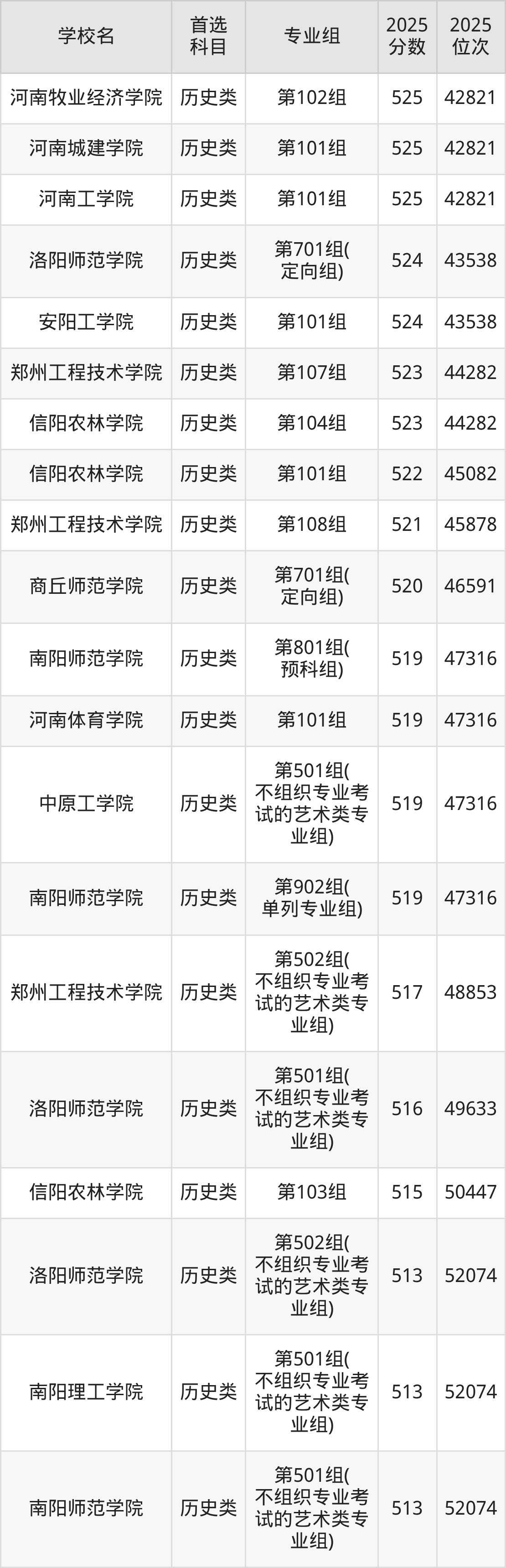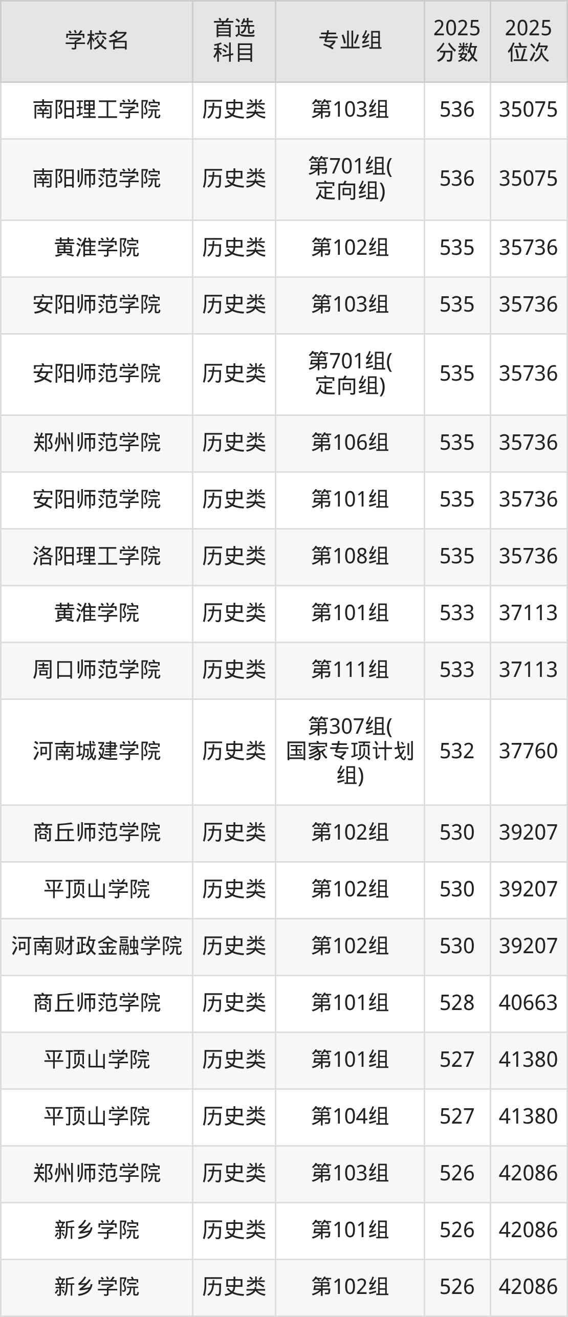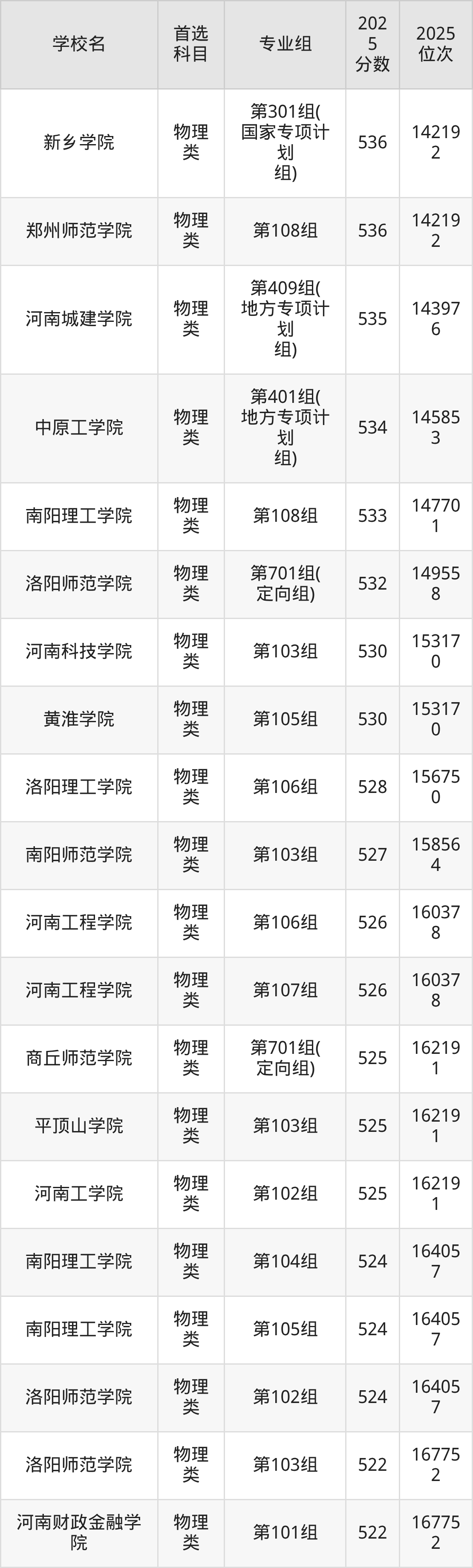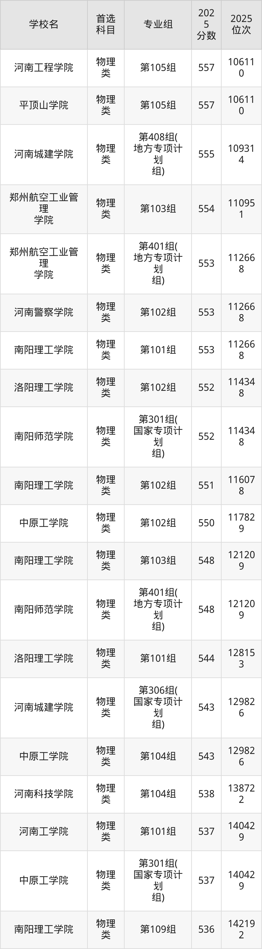 (2)河南科技學(xué)院第301組(國家專項計劃組):563分、19617名;