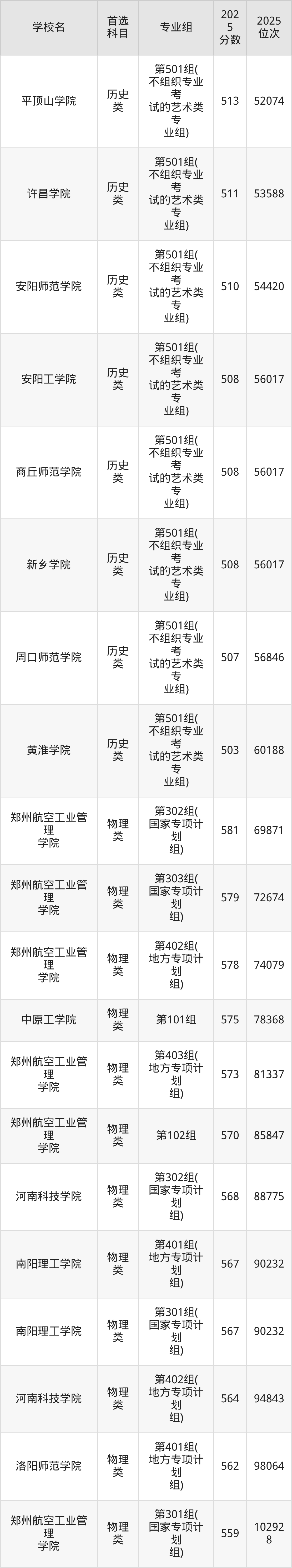 (3)新鄉(xiāng)學(xué)院第501組(不組織專業(yè)考試的藝術(shù)類專業(yè)組):508分、56017名;