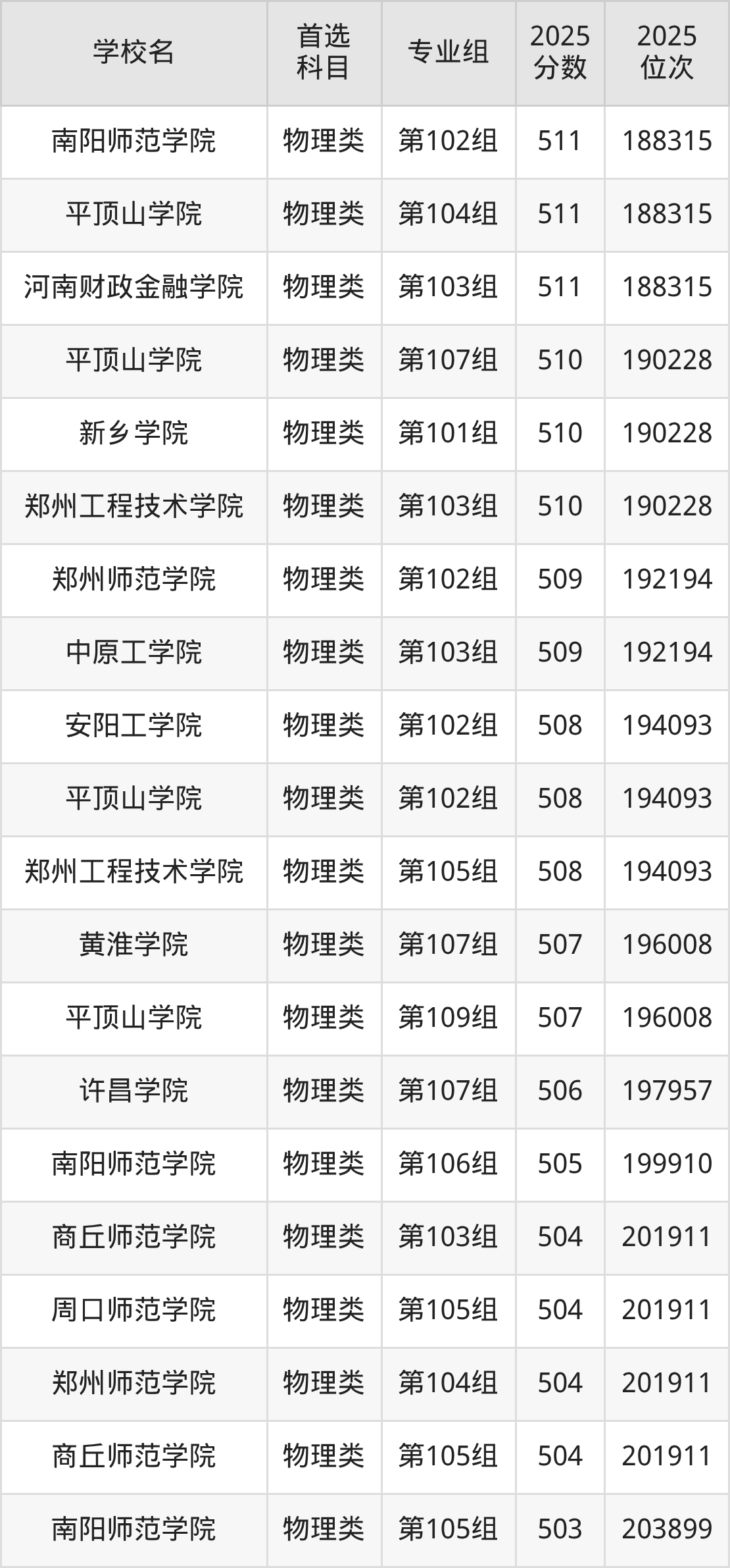 2025年一共有26所公辦二本大學(xué)在河南物理類招生,包含了156個專業(yè)組,錄取分?jǐn)?shù)線從476分到581分不等,對應(yīng)最低位次從256447名到69871名。下面分別展示河南省分?jǐn)?shù)線最高、最低的五個院校專業(yè)組。