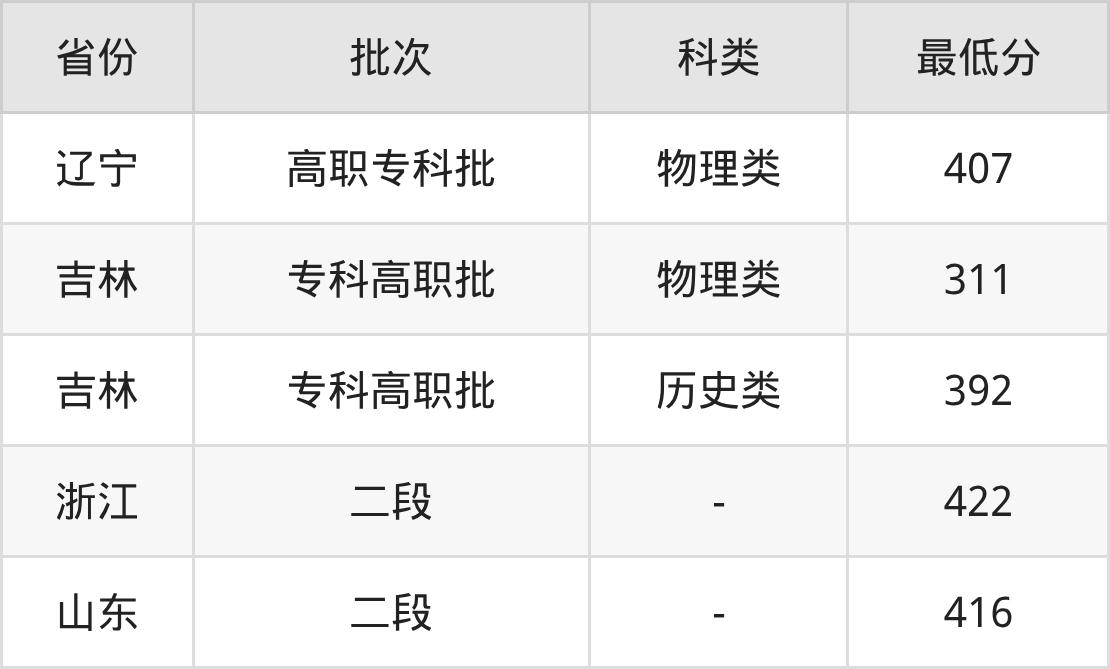 吉林交通職業(yè)技術(shù)學(xué)院現(xiàn)代物流管理專業(yè)錄取分數(shù)線2025各省匯總顯示,省內(nèi)招生最低分為311分,省外招生最低分為浙江422分、山東416分、遼寧407分。更多專業(yè)分數(shù)詳情、選科要求、專業(yè)簡介等均可在正文查閱。