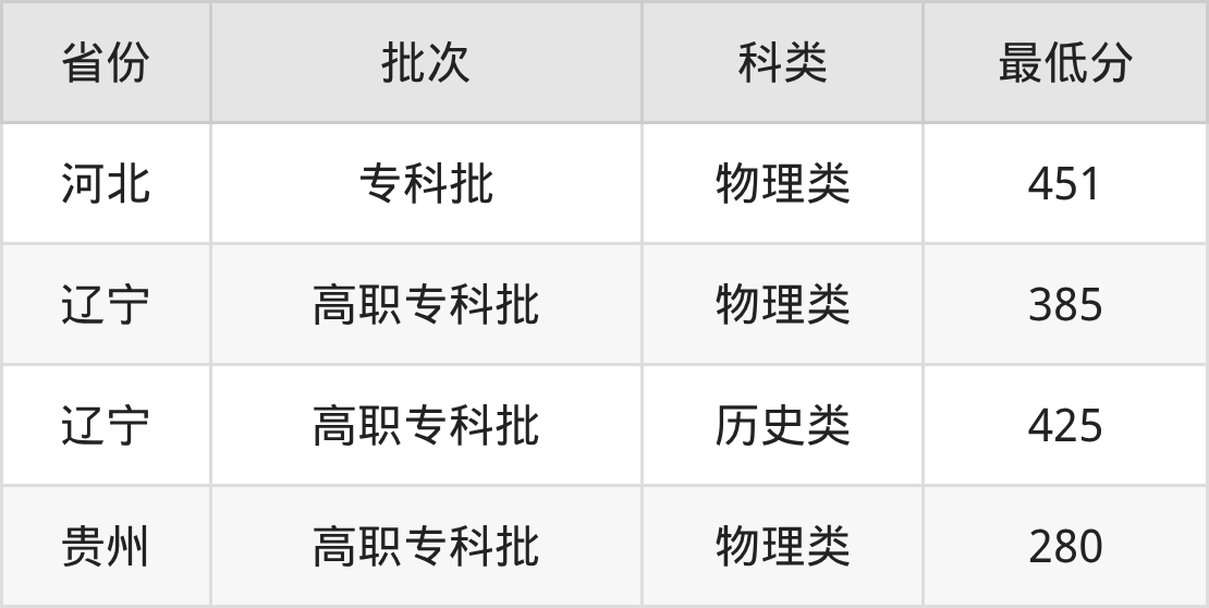 大連職業(yè)技術(shù)學(xué)院物聯(lián)網(wǎng)應(yīng)用技術(shù)專業(yè)錄取分?jǐn)?shù)線2025各省匯總顯示,省內(nèi)招生最低分為385分,省外招生最低分為河北451分、貴州280分。更多專業(yè)分?jǐn)?shù)詳情、選科要求、專業(yè)簡介等均可在正文查閱。
