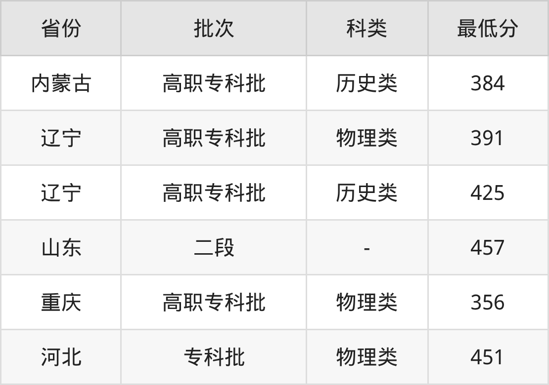 2025年大連職業(yè)技術(shù)學(xué)院現(xiàn)代移動(dòng)通信技術(shù)專業(yè)在省外招生分?jǐn)?shù)線各不相同,具體如下: