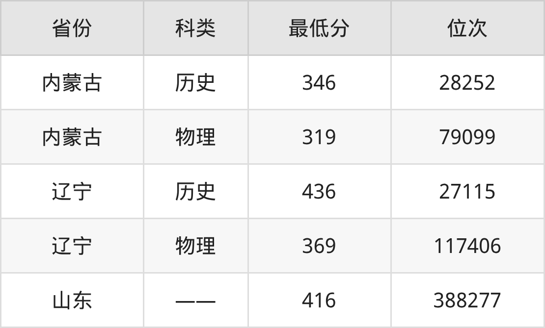 2025年盤錦職業(yè)技術(shù)學(xué)院應(yīng)用化工技術(shù)專業(yè)在內(nèi)蒙古錄取最低分:歷史組是346分,對應(yīng)位次排名是28252名;物理組是319分,對應(yīng)位次排名是79099名。