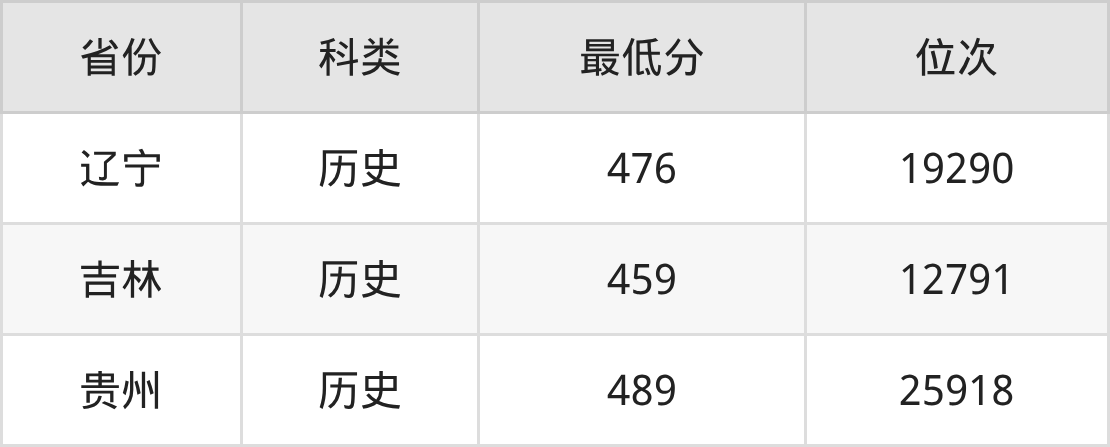 | 省份 | 首選 科目 | 招生名額 |