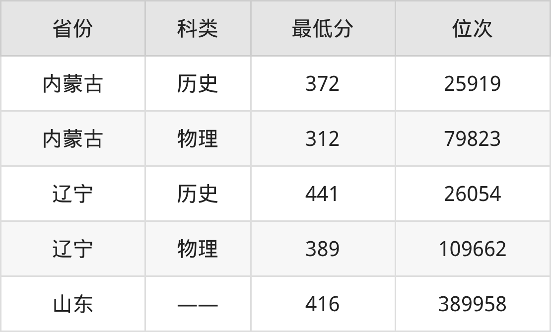 2025年盤錦職業(yè)技術(shù)學(xué)院石油工程技術(shù)專業(yè)在內(nèi)蒙古錄取最低分:歷史組是372分,對(duì)應(yīng)位次排名是25919名;物理組是312分,對(duì)應(yīng)位次排名是79823名。