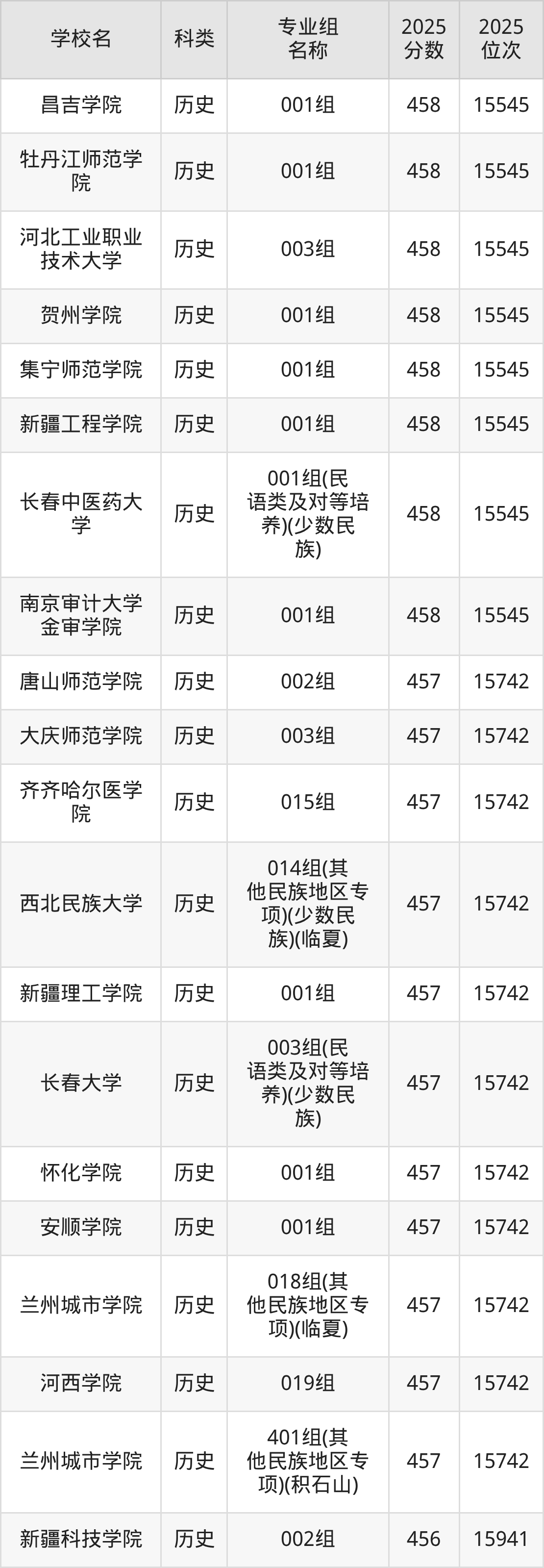 2025年甘肅歷史類本科線為412分,458分能上的二本大學(xué)共計322所,其中公辦大學(xué)錄取位次排名最低的是鞍山師范學(xué)院(005組412分,位次25282名),即代表考生省排名位次在25282名及以內(nèi)就可以報考公辦本科。