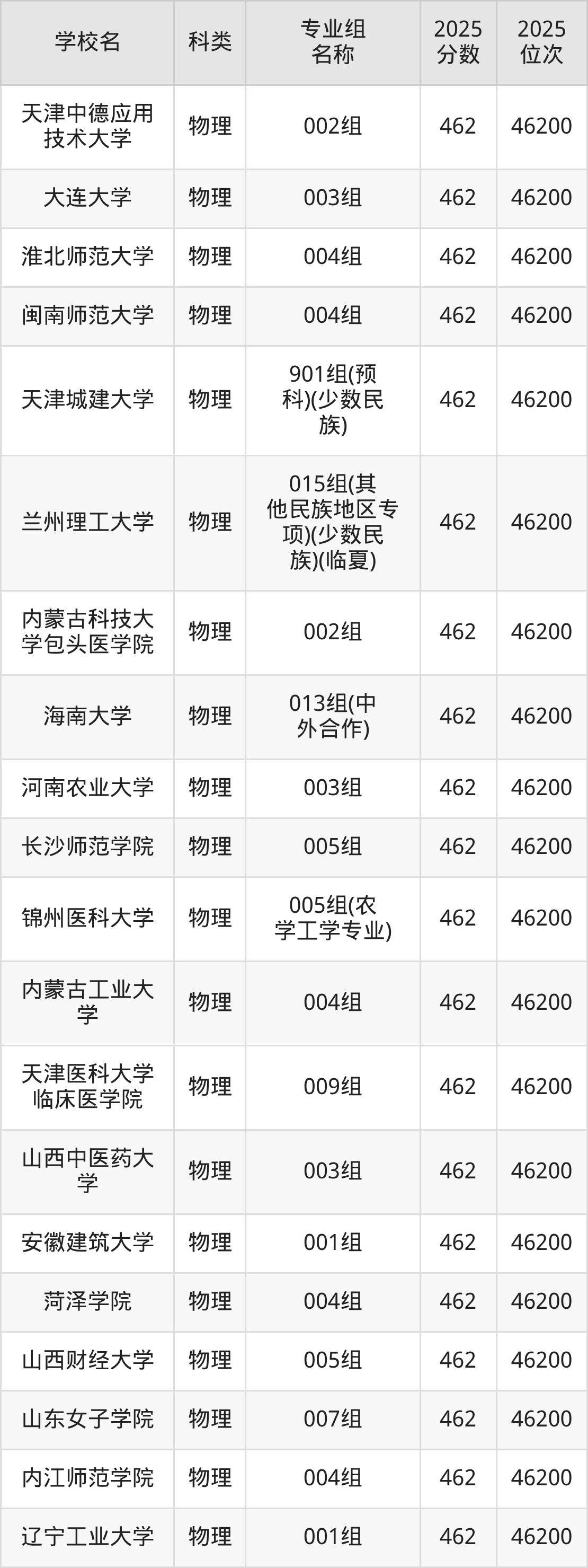 2025年吉林物理類本科線為340分,462分能上的本科大學(xué)共計489所,其中公辦大學(xué)錄取位次排名最低的是聊城大學(xué)(第004組(中外合作)340分,位次69405名),即代表考生省排名位次在69405名及以內(nèi)就可以報考公辦本科。